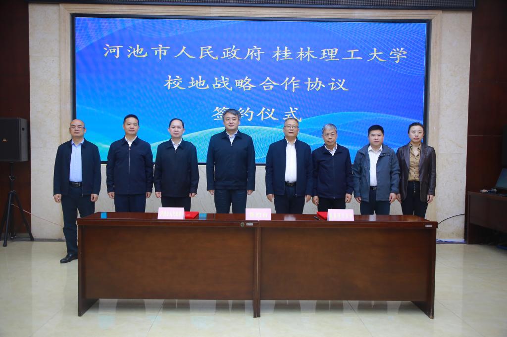 王敦球代表學(xué)校向長期以來關(guān)心支持學(xué)校發(fā)展的河池市委、市政府表示感謝。他介紹了學(xué)校的辦學(xué)定位,辦學(xué)特色,尤其是依托學(xué)科、科研和人才等方面的優(yōu)勢,深化政產(chǎn)學(xué)研深度融合方面的有關(guān)情況。他指出,學(xué)校將圍繞河池市“2+5+N”產(chǎn)業(yè)體系建設(shè),在有色金屬、新能源、新材料、智能裝備等領(lǐng)域積極開展技術(shù)攻關(guān)、科技成果轉(zhuǎn)化和人才培養(yǎng)輸送等方面做出更大貢獻,為河池市相關(guān)企業(yè)技術(shù)轉(zhuǎn)型升級、解決“卡脖子”難題提供“桂工方案”,為河池市經(jīng)濟社會發(fā)展貢獻桂工智慧和力量,同時也為學(xué)校打造“政產(chǎn)學(xué)研融合”升級版以及實現(xiàn)高質(zhì)量發(fā)展注入新動能。