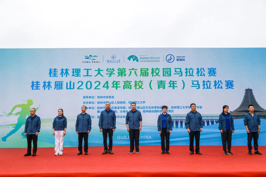 本次賽事由中共桂林市雁山區(qū)委員會、桂林市雁山區(qū)人民政府和我校主辦,桂林市雁山區(qū)委宣傳部、雁山區(qū)文化體育和旅游局、我校體育教學(xué)部、雁山鎮(zhèn)人民政府、大埠鄉(xiāng)人民政府、桂林融創(chuàng)旅游度假區(qū)共同承辦。學(xué)校黨委常委、副校長羅盛鋒,雁山區(qū)政協(xié)主席李紅,桂林市體育局副局長劉誠等有關(guān)領(lǐng)導(dǎo)出席開幕式。