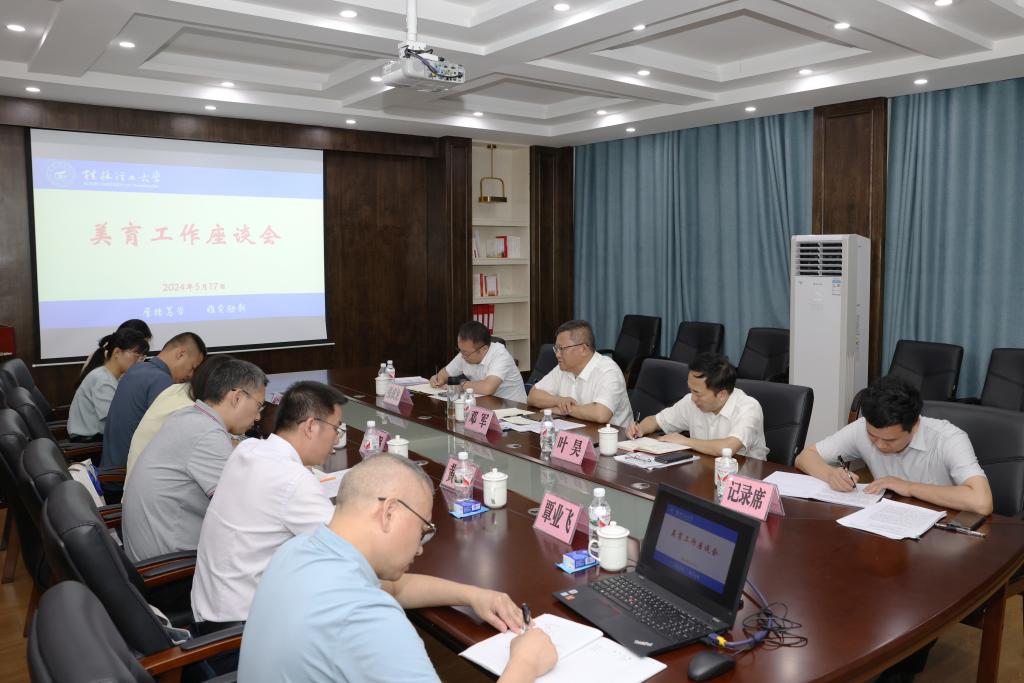 為進(jìn)一步做好新時(shí)代學(xué)校美育工作,5月17日上午,學(xué)校在雁山校區(qū)07517會(huì)議室召開(kāi)美育工作座談會(huì)。校黨委書(shū)記鄧軍,黨委常委、宣傳部部長(zhǎng)葉昊,校長(zhǎng)助理、黨辦校辦法務(wù)辦主任張成龍出席會(huì)議,學(xué)工處、本科生院、團(tuán)委、藝術(shù)學(xué)院、人文素質(zhì)教育教學(xué)部負(fù)責(zé)人參加會(huì)議。