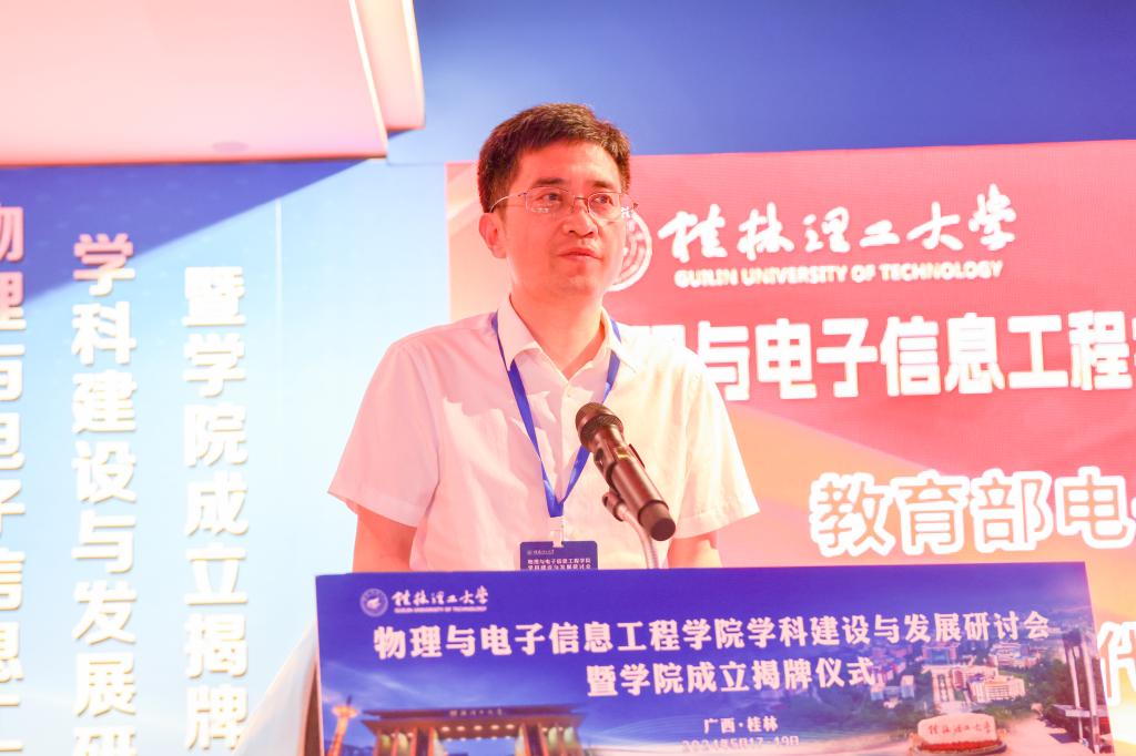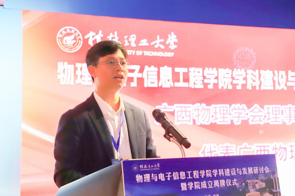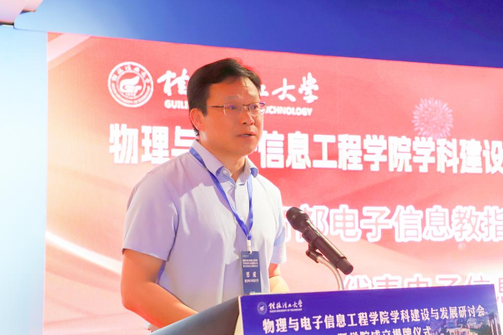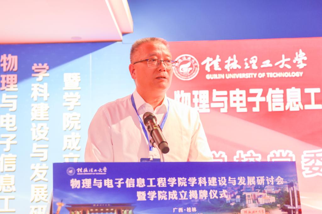 鄧成教授在致辭中指出,物理與電子信息工程學(xué)院的成立是桂林理工大學(xué)貫徹落實黨中央加強基礎(chǔ)研究重要戰(zhàn)略部署,順應(yīng)國際科技發(fā)展主流,深化學(xué)科交叉融合的一個創(chuàng)舉。學(xué)校打破學(xué)科專業(yè)壁壘,把物理學(xué)學(xué)科、電子信息類學(xué)科放在一個學(xué)院統(tǒng)籌謀劃、共同建設(shè),為學(xué)科交叉融合、共生發(fā)展提供了良好的土壤環(huán)境。