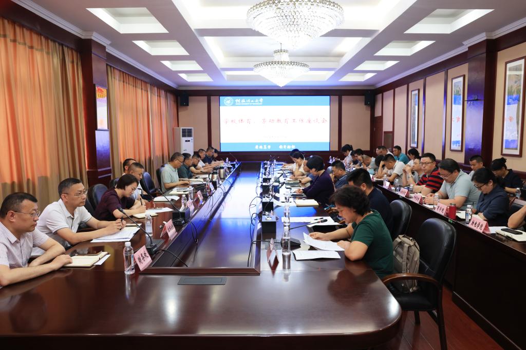 王敦球首先對有關(guān)部門落實(shí)推進(jìn)學(xué)校體育、勞動(dòng)教育工作取得的成效給予了充分肯定。他指出,近年來,學(xué)校深入貫徹落實(shí)習(xí)近平總書記關(guān)于學(xué)校體育、勞動(dòng)教育的重要指示批示精神,緊緊圍繞立德樹人根本任務(wù),大力深化人才培養(yǎng)模式改革,推動(dòng)體育、勞動(dòng)教育取得新進(jìn)展、新成效。他強(qiáng)調(diào),要強(qiáng)化認(rèn)識抓重點(diǎn),深刻認(rèn)識體育、勞動(dòng)教育在促進(jìn)學(xué)生全面成長成才方面的重要作用,深刻把握體育、勞動(dòng)教育工作的實(shí)踐要求,更好地把思想和行動(dòng)統(tǒng)一到黨中央、國務(wù)院關(guān)于全面加強(qiáng)和改進(jìn)新時(shí)代學(xué)校體育、勞動(dòng)教育工作的決策部署上來,全面增強(qiáng)學(xué)生體質(zhì)、養(yǎng)成體育鍛煉習(xí)慣和勞動(dòng)習(xí)慣,著力培養(yǎng)德智體美勞全面發(fā)展的社會(huì)主義建設(shè)者和接班人;要點(diǎn)面結(jié)合抓覆蓋,把“教會(huì)”“勤練”“常賽”的理念貫徹體育育人全過程,堅(jiān)持突出勞動(dòng)教育工作重點(diǎn),推動(dòng)勞動(dòng)教育與思想引領(lǐng)、學(xué)科建設(shè)、校園文化等方面緊密融合、互促互進(jìn),更好地落實(shí)學(xué)校關(guān)于體育、勞動(dòng)教育工作的部署和要求,確保各項(xiàng)工作措施落地見效;要注重統(tǒng)籌抓協(xié)同,強(qiáng)化責(zé)任意識,主動(dòng)作為、靠前謀劃,持續(xù)加強(qiáng)部門間的協(xié)同聯(lián)動(dòng),更好地統(tǒng)籌學(xué)校各領(lǐng)域各環(huán)節(jié)的育人資源和育人力量,著力推動(dòng)學(xué)校體育、勞動(dòng)教育工作高質(zhì)量發(fā)展,不斷提高學(xué)校高水平人才培養(yǎng)和育人質(zhì)量水平。