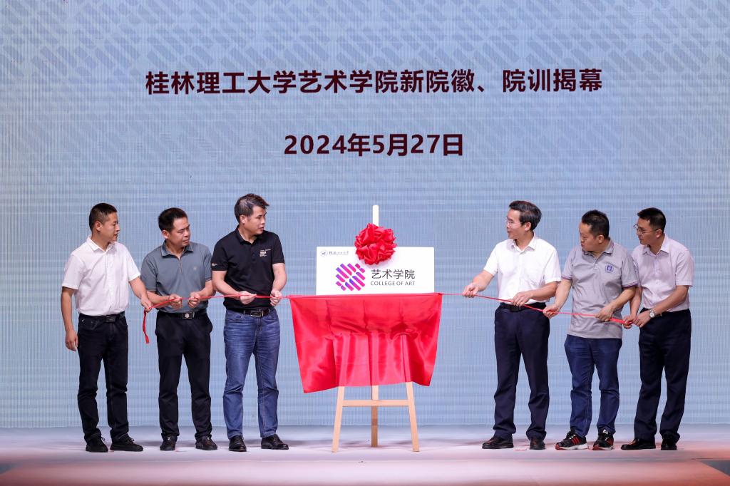 活動(dòng)伊始,韋學(xué)敏、曾繁榮與自治區(qū)工業(yè)和信息化廳輕工處處長(zhǎng)曾祥平,桂林市工業(yè)和信息化局黨組成員、副局長(zhǎng)李正超等領(lǐng)導(dǎo)共同為我校藝術(shù)學(xué)院新院徽院訓(xùn)揭牌。