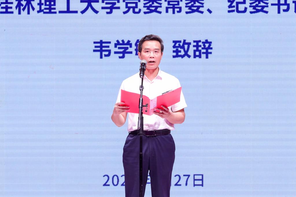 自治區(qū)紀(jì)委監(jiān)委駐學(xué)校紀(jì)檢監(jiān)察組組長(zhǎng)、學(xué)校黨委常委、紀(jì)委書記韋學(xué)敏致辭