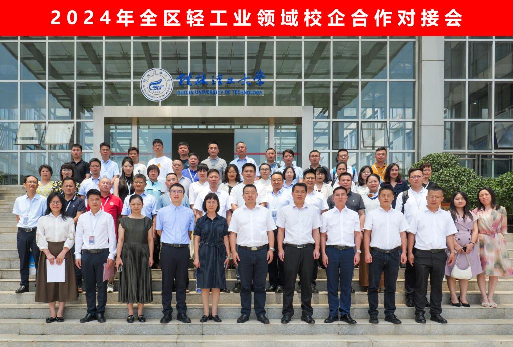 為深化校企合作,推動(dòng)產(chǎn)教融合,助力廣西工業(yè)振興,5月28日,由自治區(qū)工業(yè)和信息化廳、我校聯(lián)合主辦,桂林市工業(yè)和信息化局、我校藝術(shù)學(xué)院承辦的全區(qū)輕工業(yè)領(lǐng)域校企合作對(duì)接會(huì)在雁山校區(qū)舉辦。校黨委常委、副校長(zhǎng)羅盛鋒,自治區(qū)工業(yè)和信息化廳輕工處處長(zhǎng)曾祥平,玉林市福綿區(qū)黨委常委、統(tǒng)戰(zhàn)部部長(zhǎng)鐘樞出席會(huì)議。各市工業(yè)和信息化局,全區(qū)輕工業(yè)領(lǐng)域40多家企業(yè),相關(guān)兄弟院校,我校黨辦校辦法務(wù)辦、學(xué)工處、科研院、校友與國(guó)內(nèi)合作處、機(jī)械與控制工程學(xué)院、藝術(shù)學(xué)院負(fù)責(zé)人以及畢業(yè)生代表等300余人參會(huì)。