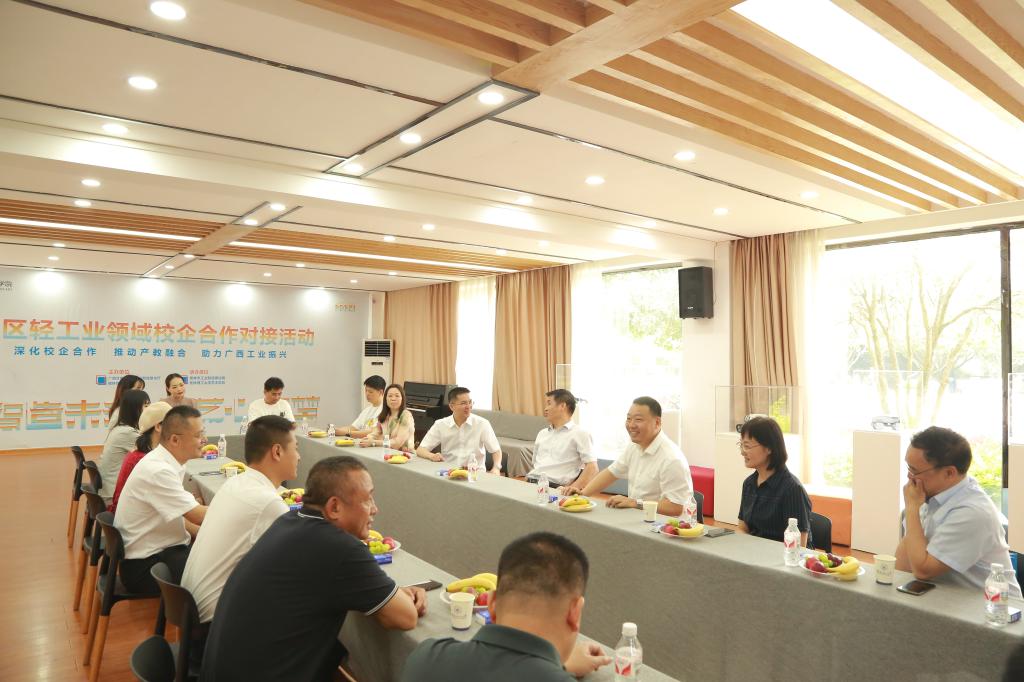曾祥平代表自治區(qū)工信廳向我校表示衷心感謝。他指出,近年來(lái)廣西輕工行業(yè)發(fā)展勢(shì)頭良好,一批龍頭企業(yè)重大項(xiàng)目落地投產(chǎn),輕工產(chǎn)業(yè)逐步形成“廣西制造—國(guó)際國(guó)內(nèi)兩個(gè)市場(chǎng)”的跨區(qū)域跨境產(chǎn)業(yè)鏈供應(yīng)鏈深度融合模式,進(jìn)一步深化輕工領(lǐng)域的校企合作正當(dāng)其時(shí),前景廣闊,大有可為。他希望各企業(yè)主動(dòng)成為校企合作的“推動(dòng)者”,大膽“出題”,共研合作機(jī)制,共享合作“紅利”,推動(dòng)企業(yè)高質(zhì)量發(fā)展;各院校作為全區(qū)工業(yè)振興“支撐力量”,要敢于“接招”,勇于“答題”,解決企業(yè)發(fā)展難題,與企業(yè)共同發(fā)展新質(zhì)生產(chǎn)力;校企雙方要不斷拓寬合作的深度和廣度,創(chuàng)新合作方式,在技術(shù)研發(fā)、產(chǎn)品推廣、信息供給、人員培訓(xùn)、管理咨詢等領(lǐng)域開(kāi)展全方位合作,讓產(chǎn)業(yè)作“閱卷人”,共同推動(dòng)產(chǎn)業(yè)的高質(zhì)量發(fā)展。