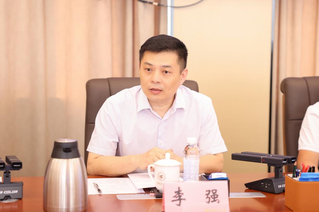 為進(jìn)一步加強(qiáng)校地合作,實(shí)現(xiàn)資源共享、成果互推、項(xiàng)目共建,加快推動(dòng)雁山高校新質(zhì)生產(chǎn)力科創(chuàng)產(chǎn)業(yè)園建設(shè),6月7日上午,雁山區(qū)委書(shū)記李強(qiáng)、區(qū)長(zhǎng)潘軍華率隊(duì)到我校雁山校區(qū)調(diào)研交流。學(xué)校黨委書(shū)記鄧軍,黨委副書(shū)記、校長(zhǎng)王敦球在行知樓第三會(huì)議室會(huì)見(jiàn)了李強(qiáng)、潘軍華一行。座談會(huì)由學(xué)校黨委常委、副校長(zhǎng)黎貞崇主持。
