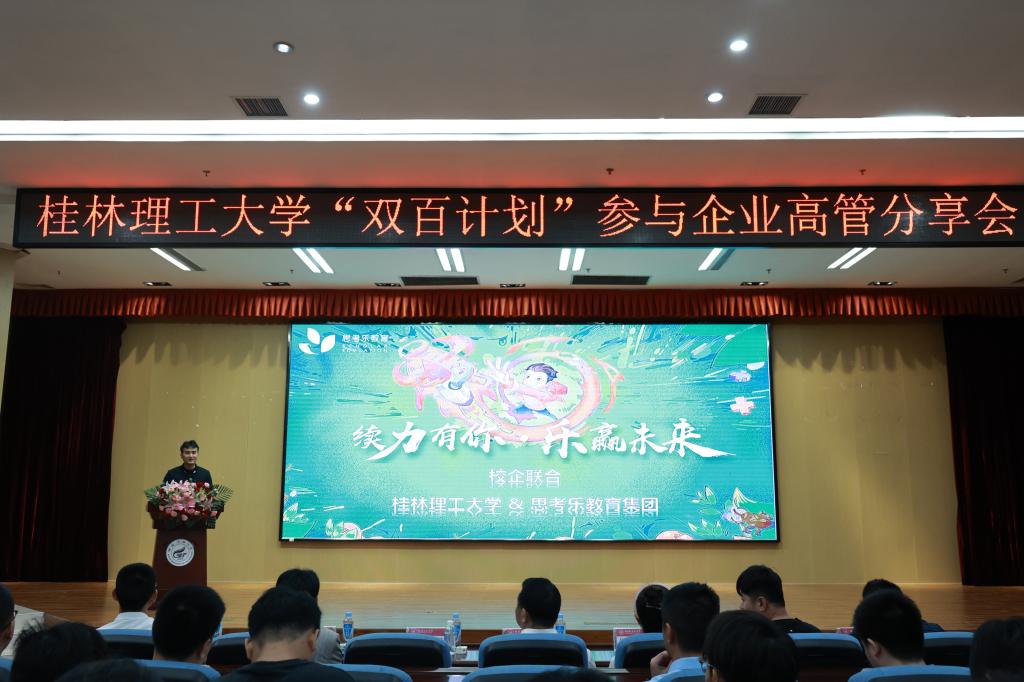 在桂林期間,還舉行了“雙百計劃”參與企業(yè)高管分享會,齊明智結(jié)合自身成長經(jīng)歷和企業(yè)發(fā)展經(jīng)歷,與在場師生分享了就業(yè)創(chuàng)業(yè)體會,為學(xué)生提供就業(yè)指導(dǎo)和職業(yè)規(guī)劃建議。
