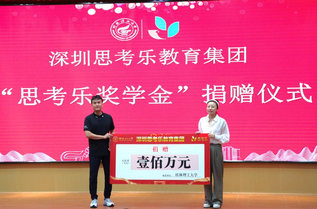 會上,雙方簽訂了戰(zhàn)略合作框架協(xié)議和“思考樂獎學(xué)金”捐贈協(xié)議。按照協(xié)議,深圳市思考樂文化教育科技發(fā)展有限公司作為我?!半p百計劃”參與企業(yè),將捐贈100萬元用以設(shè)立“思考樂獎學(xué)金”、“思考樂教育基金”。