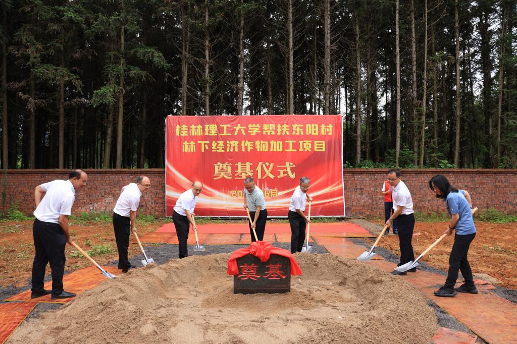 為“桂林理工大學(xué)幫扶東陽村林下經(jīng)濟(jì)作物加工廠”奠基