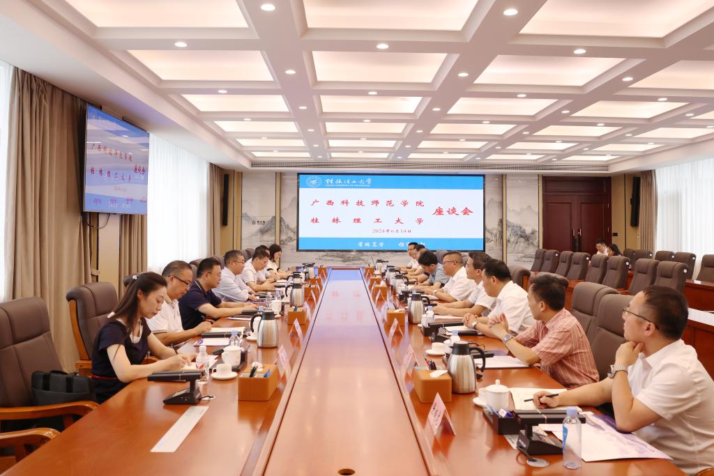 6月14日,廣西科技師范學(xué)院黨委書記楊杰、副校長周叮波、游少鴻一行來校調(diào)研。座談交流會在雁山校區(qū)第三會議室舉行。學(xué)校黨委書記鄧軍,自治區(qū)紀(jì)委監(jiān)委駐學(xué)校紀(jì)檢監(jiān)察組組長,學(xué)校黨委常委、紀(jì)委書記韋學(xué)敏,黨委常委、副校長王磊,黨委常委、副校長羅盛鋒出席調(diào)研座談會。