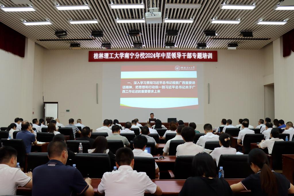 6月21日上午,學(xué)校黨委書記鄧軍在空港校區(qū)圖書館報告廳為南寧分校作專題輔導(dǎo)報告。學(xué)校黨委常委、副校長,南寧分校校長羅盛鋒,學(xué)校黨委常委、組織部部長唐壯東,黨委常委、宣傳部部長葉昊,黨委常委、統(tǒng)戰(zhàn)部部長邱杰,校長助理、黨辦校辦法務(wù)辦主任張成龍,南寧分校部分領(lǐng)導(dǎo)班子成員,南寧分校全體中層干部及黨支部書記參加報告會。