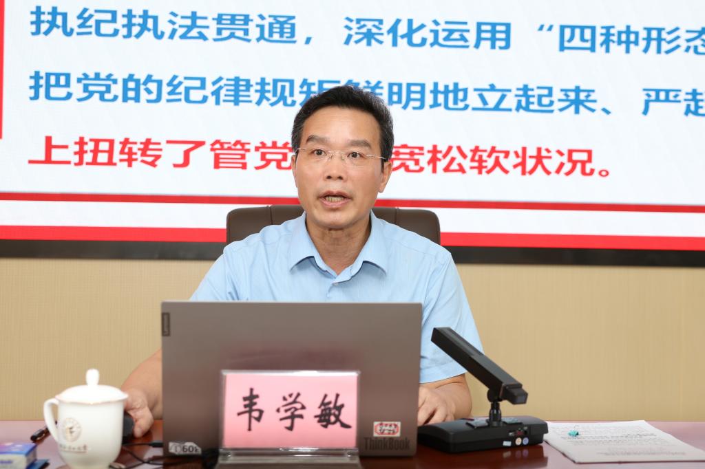 韋學(xué)敏指出,要提高政治站位,筑牢信仰根基,深刻領(lǐng)悟“兩個(gè)確立”的決定性意義,堅(jiān)定不移擔(dān)負(fù)“兩個(gè)維護(hù)”重大政治責(zé)任,堅(jiān)定政治信仰。要深化學(xué)思踐悟,凝聚思想共識(shí),深入領(lǐng)會(huì)修訂《中國(guó)共產(chǎn)黨紀(jì)律處分條例》的重點(diǎn)內(nèi)容,強(qiáng)化自我約束,提高免疫能力,凝聚干事創(chuàng)業(yè)精氣神,在新時(shí)代新征程上作出新貢獻(xiàn)。要履行監(jiān)督職責(zé),強(qiáng)化責(zé)任擔(dān)當(dāng),堅(jiān)持對(duì)違紀(jì)問(wèn)題零容忍,重點(diǎn)查處違反“六大紀(jì)律”和違反中央八項(xiàng)規(guī)定精神問(wèn)題,把從嚴(yán)管理監(jiān)督和鼓勵(lì)擔(dān)當(dāng)作為切實(shí)統(tǒng)一起來(lái),不斷推動(dòng)全面從嚴(yán)治黨向縱深發(fā)展。