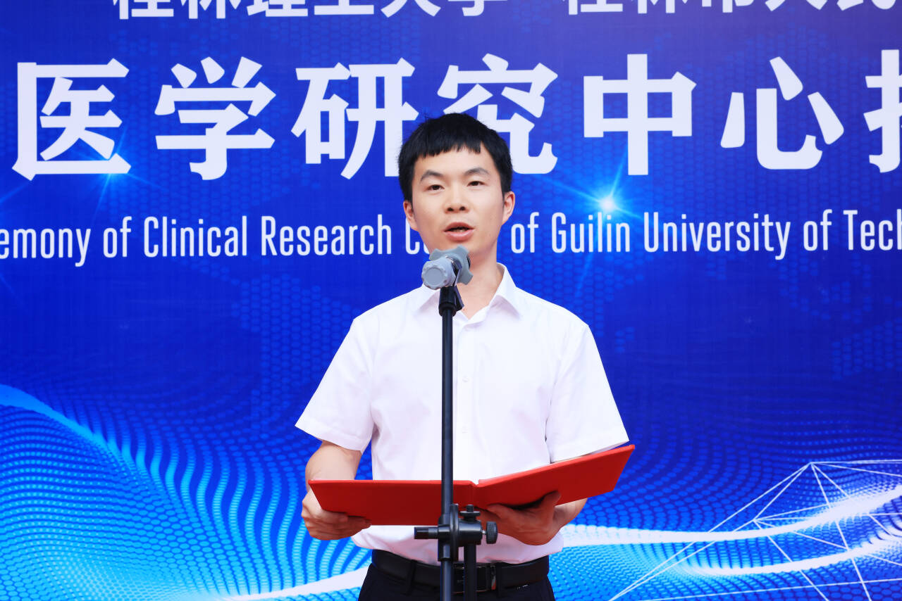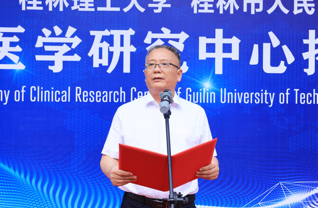 王敦球向桂林理工大學(xué)-桂林市人民醫(yī)院臨床醫(yī)學(xué)研究中心的揭牌表示熱烈祝賀,向長期以來關(guān)心支持學(xué)校建設(shè)發(fā)展的桂林市衛(wèi)健委、桂林市人民醫(yī)院表示衷心感謝。他表示,學(xué)校將秉承“融合互補、共謀發(fā)展、互利雙贏”的原則,進一步增強與市人民醫(yī)院的合作,共同探索前沿疾病診療技術(shù)研發(fā)與應(yīng)用、科技成果轉(zhuǎn)化、創(chuàng)新人才培養(yǎng)和產(chǎn)學(xué)研一體化建設(shè)的新模式,為學(xué)校和醫(yī)院的高質(zhì)量發(fā)展注入新的動能,以新質(zhì)生產(chǎn)力為桂林市經(jīng)濟社會發(fā)展作出新的更大貢獻。