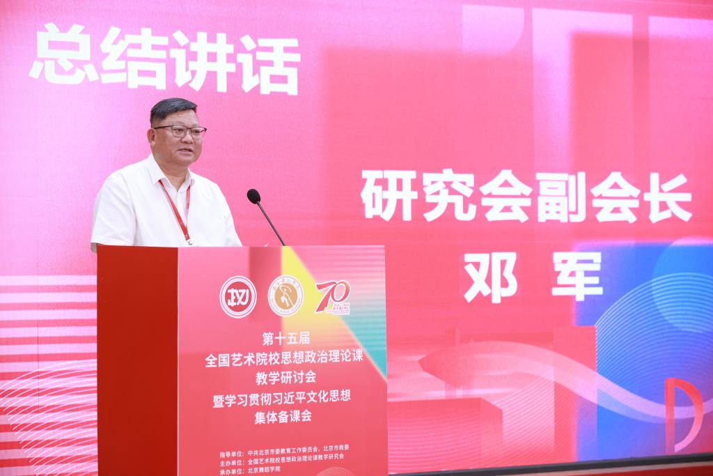 7月16日至18日,第十五屆全國(guó)藝術(shù)院校思想政治理論課教學(xué)研討會(huì)暨學(xué)習(xí)貫徹習(xí)近平文化思想集體備課會(huì)在北京召開。本次會(huì)議由全國(guó)藝術(shù)院校思想政治理論課教學(xué)研究會(huì)主辦,北京舞蹈學(xué)院承辦,來自全國(guó)43所藝術(shù)院校的領(lǐng)導(dǎo)、馬克思主義學(xué)院(思政部)負(fù)責(zé)人和教師代表共240余人相聚北京,圍繞“以習(xí)近平文化思想為引領(lǐng),科學(xué)把握思政課建設(shè)新形勢(shì)新任務(wù),不斷開創(chuàng)新時(shí)代藝術(shù)院校思政教育新局面”的主題,深入學(xué)習(xí)貫徹習(xí)近平新時(shí)代中國(guó)特色社會(huì)主義思想,守正創(chuàng)新推動(dòng)藝術(shù)院校思想政治理論課內(nèi)涵式發(fā)展。我校黨委書記鄧軍教授應(yīng)邀出席研討會(huì),并受研究會(huì)巴圖會(huì)長(zhǎng)和組委會(huì)的委托作總結(jié)發(fā)言。