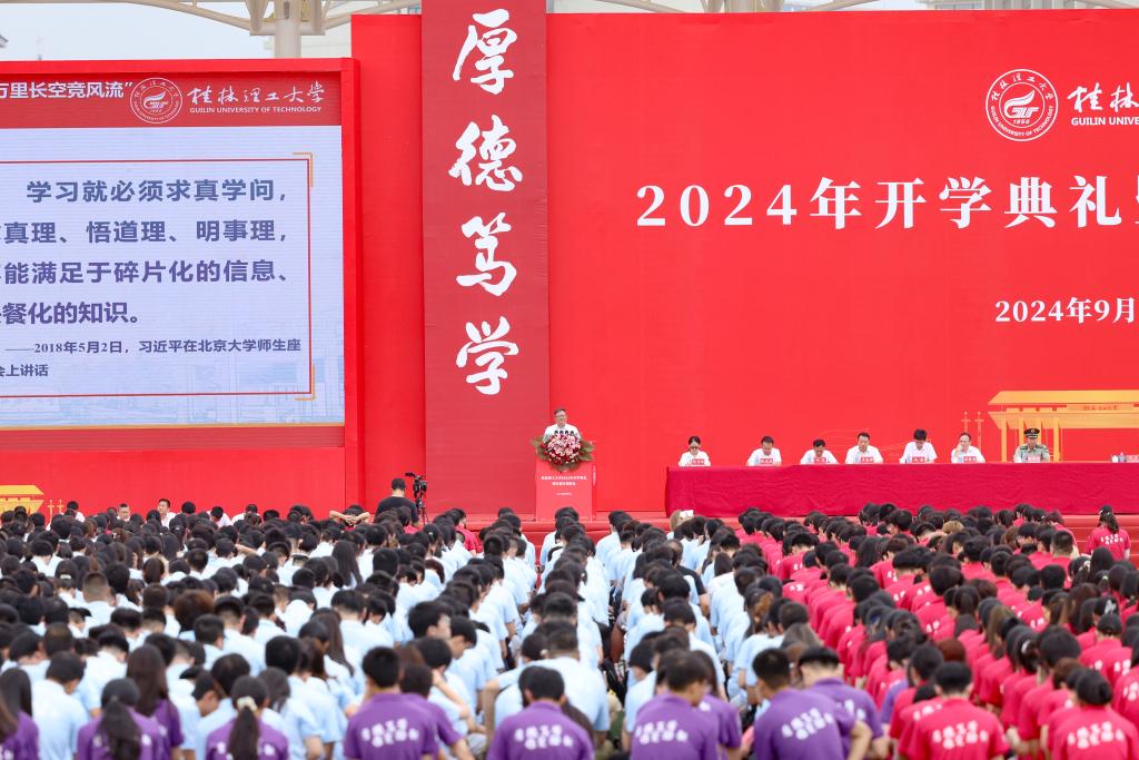 歲月如歌,青春如詩。鄧軍指出,學校的愿景是讓每一個選擇在桂林理工大學學習的青年學生都能在這里自由而全面地成長,都能在這里收獲知識、理想、本領和希望?,F在起,同學們將在桂工校園里正式開啟大學時光,學校已經為學子的成長成才創(chuàng)造了優(yōu)良的條件。他希望同學們爭做壯志滿懷、奔騰不息的時代“后浪”,不負“大有可為”的新時代,爭做“奮發(fā)有為”的好青年,與黨同心、與國同向、與時代同頻共振,在推進強國建設、民族復興偉業(yè)中展現青春作為、彰顯青春風采、貢獻青春力量,以桂工大學生應有的奮發(fā)向上書寫為中國式現代化挺膺擔當的青春篇章!