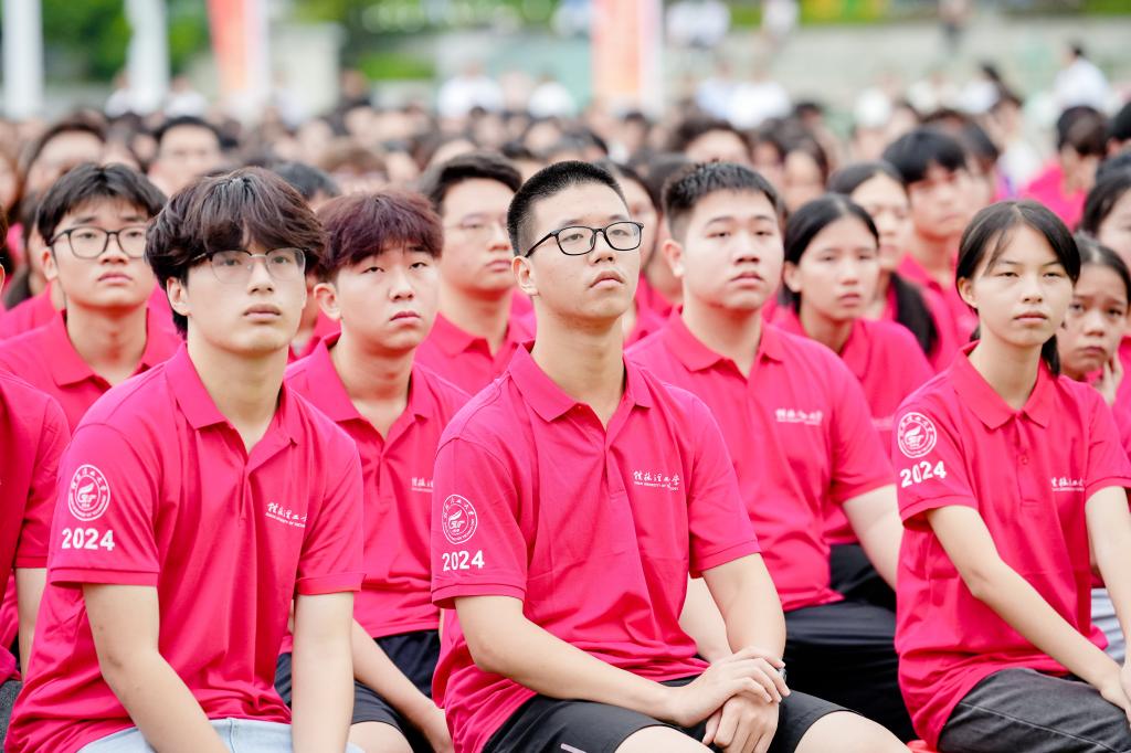 9月9日,我校2024年新生開學典禮暨軍訓開訓典禮在雁山校區(qū)舉行,學校黨委書記鄧軍以“與黨同心,與國同向,與時代同頻共振,奮力書寫為中國式現代化挺膺擔當的青春篇章”為題,為2024級全體新生講授“開學第一堂黨課”,8000余名新生現場聆聽了黨課。活動由學校黨委副書記吳志強主持。