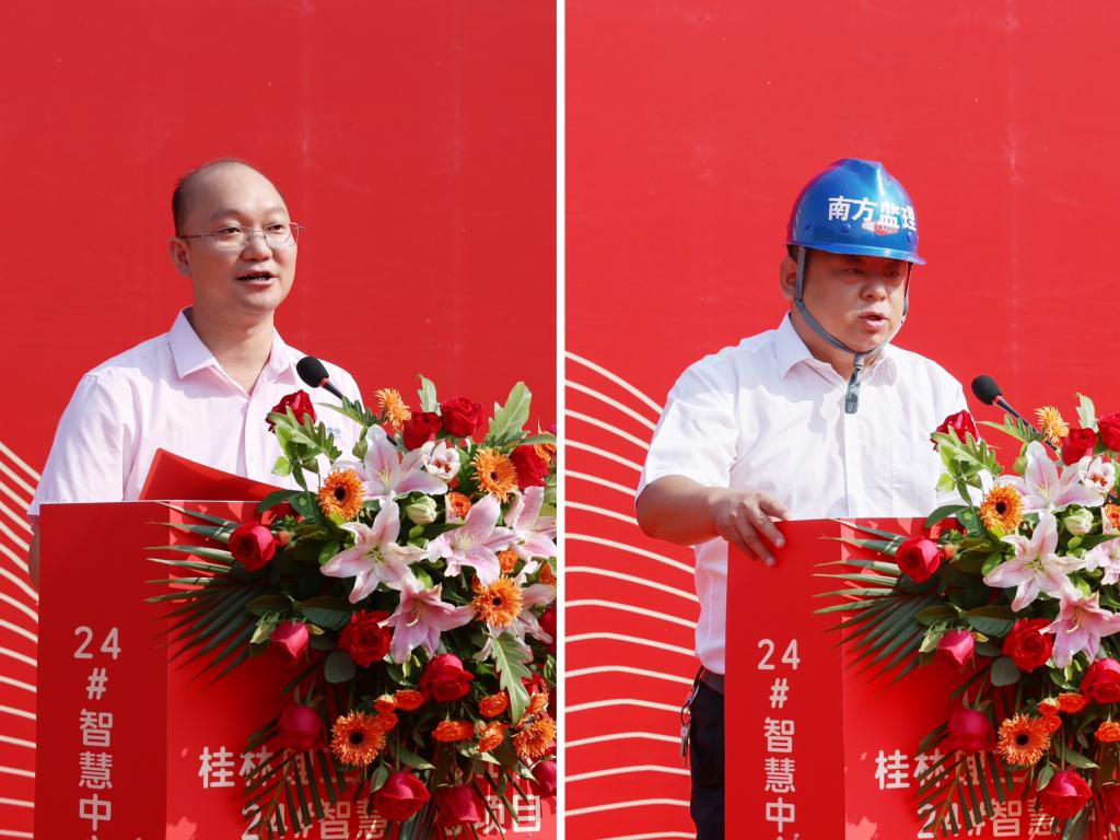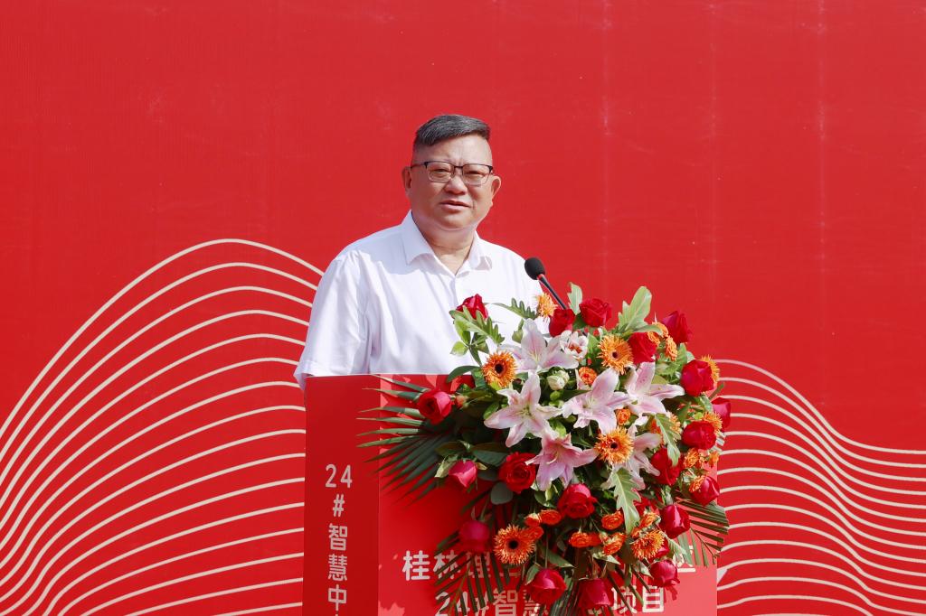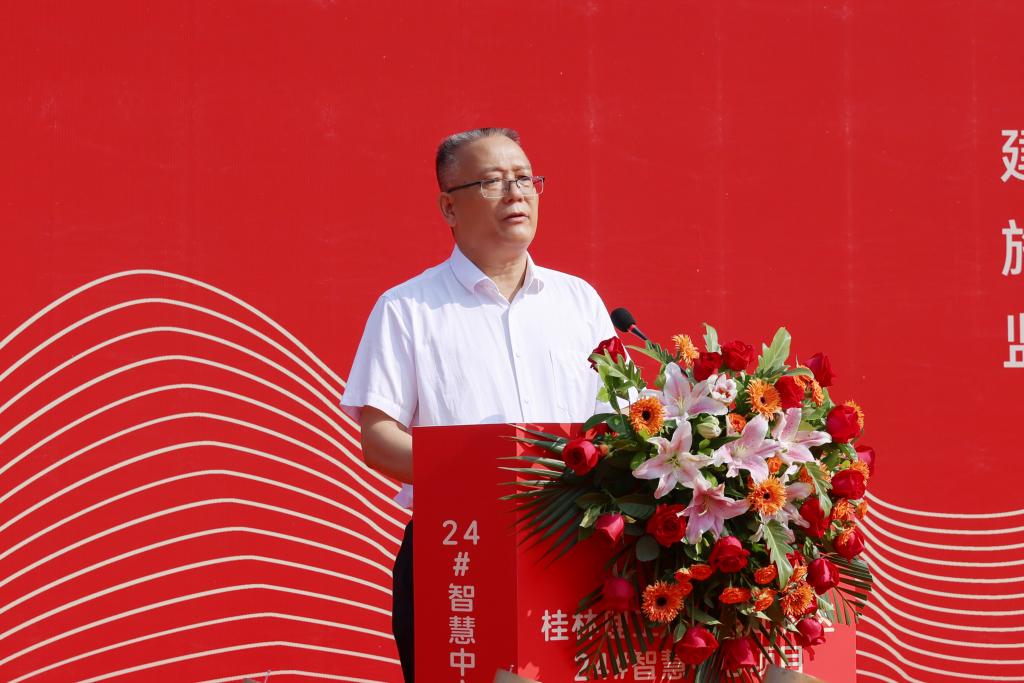 王敦球在致辭中代表學(xué)校對參加開工儀式的各位領(lǐng)導(dǎo)、來賓表示熱烈歡迎,向一直以來關(guān)心支持我校建設(shè)發(fā)展的自治區(qū)教育廳、桂林市及各級(jí)領(lǐng)導(dǎo)表示崇高敬意。他指出,建設(shè)雁山校區(qū)24#智慧中心項(xiàng)目,是學(xué)校發(fā)揮智慧教育新優(yōu)勢、大力推進(jìn)智慧校園、“數(shù)字桂工”建設(shè)新畫卷中濃墨重彩的一筆。他強(qiáng)調(diào),施工單位要精心組織、精心管理、精心施工,確保工程建設(shè)安全、穩(wěn)定、有序推進(jìn),保質(zhì)、高效、按期完成;監(jiān)理單位要強(qiáng)化責(zé)任意識(shí),加強(qiáng)施工監(jiān)管,強(qiáng)化質(zhì)量監(jiān)督,確保按質(zhì)按量完成項(xiàng)目監(jiān)理工作;學(xué)校基建處等部門要壓緊壓實(shí)各建設(shè)參與方責(zé)任,科學(xué)統(tǒng)籌項(xiàng)目管理,確保24#智慧中心項(xiàng)目建設(shè)穩(wěn)步推進(jìn),如期建成,合力打造出師生滿意、經(jīng)得起時(shí)代和歷史檢驗(yàn)的精品工程、典范工程。