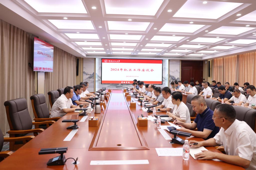 9月19日下午,我校在雁山校區(qū)第三會議室召開2024年機關工作座談會,深入學習貫徹黨的二十屆三中全會精神,學習貫徹習近平總書記就中央和國家機關學習貫徹黨的二十屆三中全會精神、推動機關黨建高質量發(fā)展作出的重要指示,總結工作、交流經(jīng)驗、分析形勢、研究問題,進一步明確機關工作新要求,推動機關黨建與業(yè)務深度融合,以機關工作新作為推動學校發(fā)展再展新氣象。學校黨委書記鄧軍出席會議并講話。自治區(qū)紀委監(jiān)委駐校紀檢監(jiān)察組組長,學校黨委常委、紀委書記韋學敏主持會議。在家校領導周國清、黎貞崇、羅盛鋒,學校機關黨委委員、紀委委員、部分機關部門負責人參加會議。