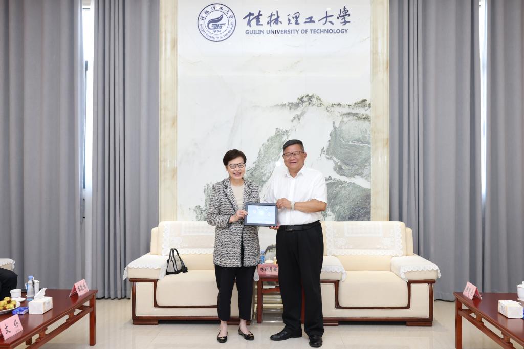 林鄭月娥表示,香港擁有豐富的優(yōu)質(zhì)高等教育資源,諸多高校在世界大學(xué)排名中靠前,當(dāng)前正大力推動科技創(chuàng)新發(fā)展,廣納海內(nèi)外科研人才。她希望通過此次訪問,推動桂工與香港地區(qū)高校的進一步合作,促進雙方在學(xué)術(shù)交流、人才培養(yǎng)、青年創(chuàng)新創(chuàng)業(yè)等方面的交流。