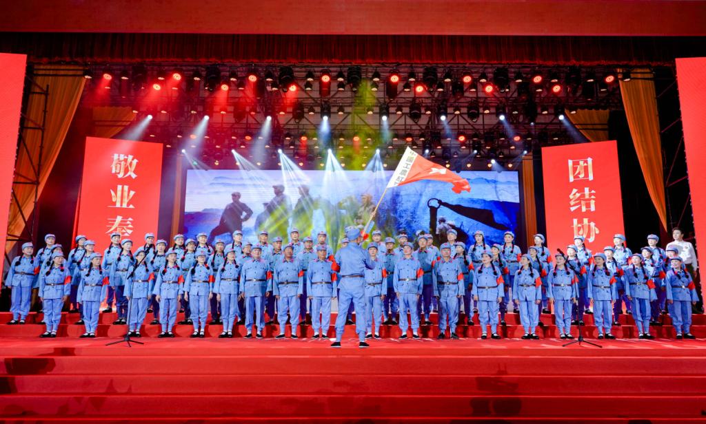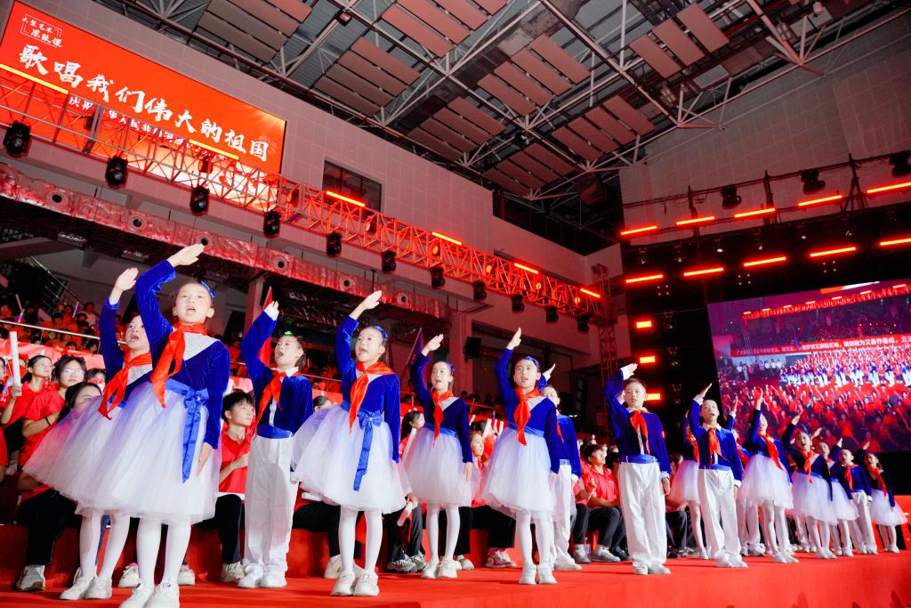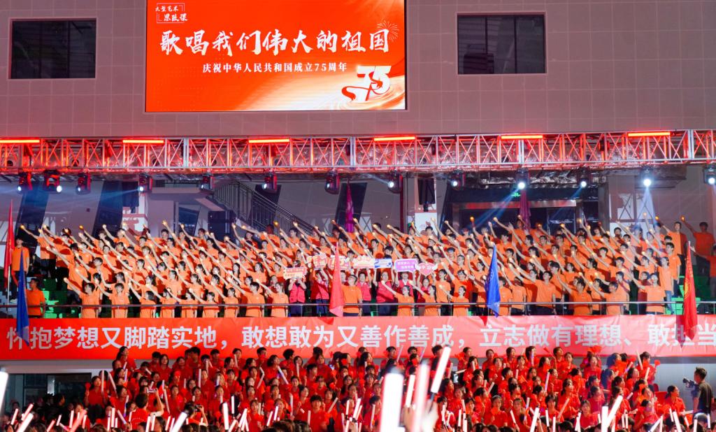 學(xué)?!案璩覀儌ゴ蟮淖鎳薄獞c祝中華人民共和國成立75周年大型藝術(shù)思政課現(xiàn)場