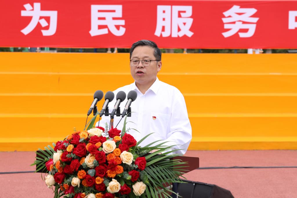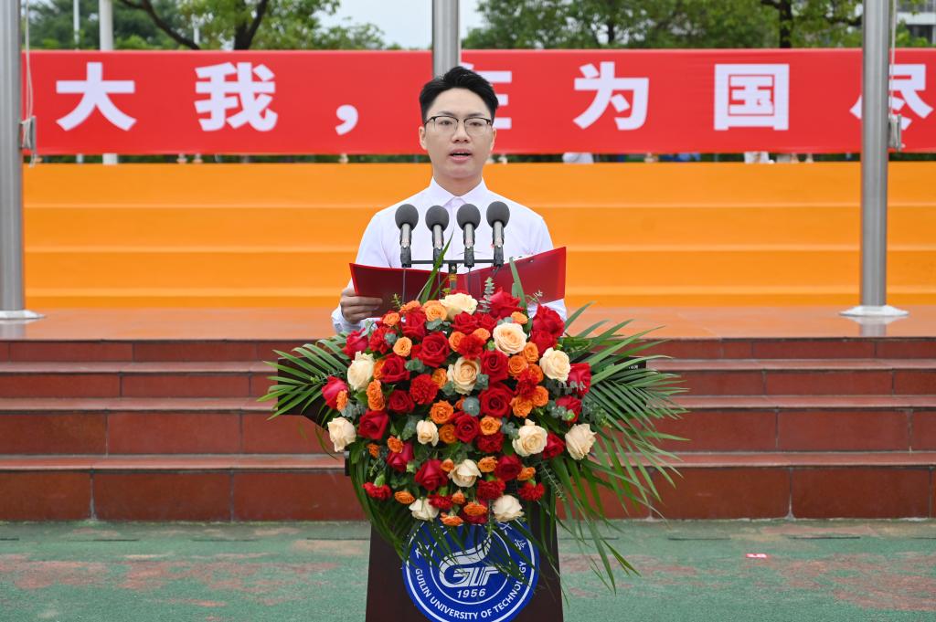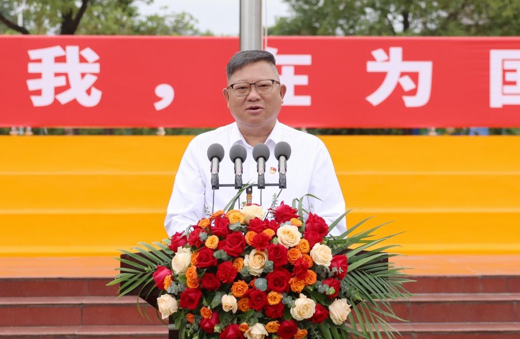 儀式上,學(xué)校黨委書記鄧軍為全體師生講授題為《懷揣愛國心、勇立強國志、躬身報國行 努力為全面建設(shè)社會主義現(xiàn)代化強國貢獻青春力量》的愛國主義專題微黨課。他指出,中華民族偉大復(fù)興的目標,離不開一代又一代中國青年前赴后繼、艱苦卓絕的接續(xù)奮斗,廣大學(xué)子要胸懷強國之志、錘煉強國之技、勇建強國之功,以只爭朝夕的歷史主動、舍我其誰的責(zé)任擔(dān)當,銳意進取、迎難而上,讓青春在為祖國、為民族、為人民、為人類的不懈奮斗中綻放絢麗之花。