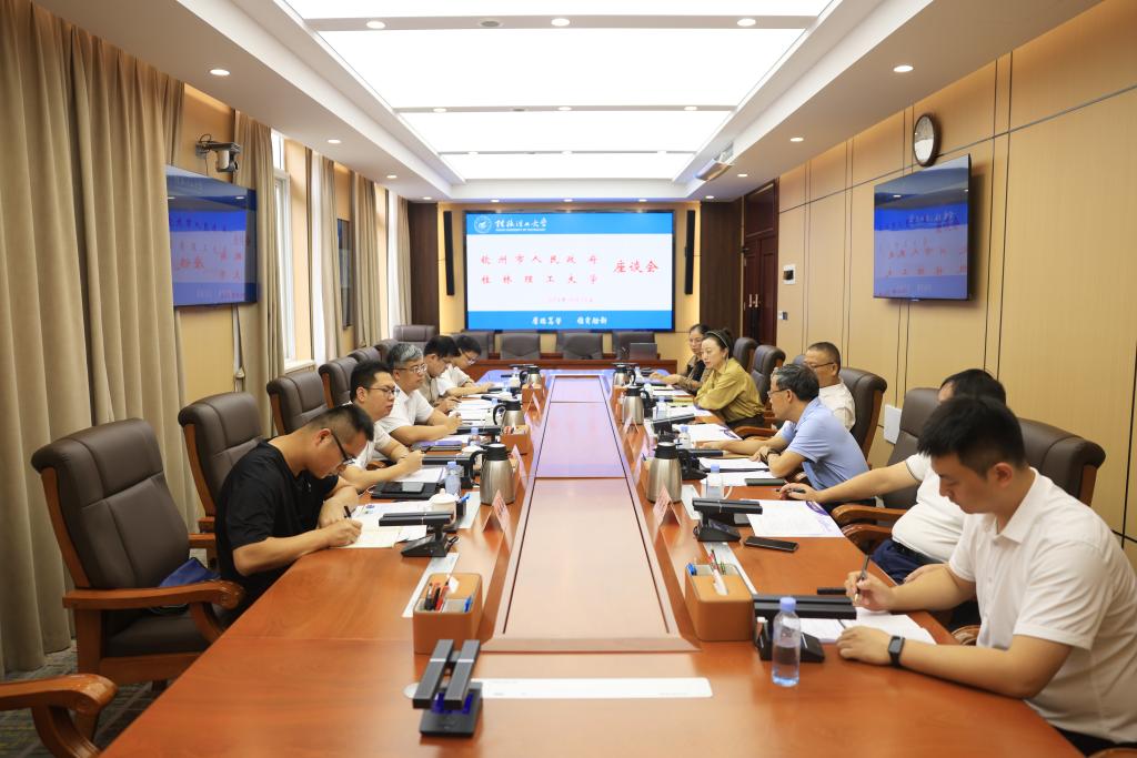 王文澤介紹了欽州市的建設發(fā)展情況,對我校在人才培養(yǎng)、科學研究、社會服務、科技創(chuàng)新等方面作出的突出貢獻表示敬意。他表示,一直以來,欽州市搶抓機遇壯大產(chǎn)業(yè)發(fā)展,多措并舉推進科技創(chuàng)新,為寫好“港、區(qū)、產(chǎn)、城、人”五篇文章,加快建設高質量發(fā)展、高水平開放、高品質生活的濱海運河城市注入強勁動能,為奮力譜寫中國式現(xiàn)代化廣西篇章作出卓越貢獻。他希望,雙方繼續(xù)秉持合作共贏理念,進一步加強溝通交流、完善合作機制,在重點領域、重點產(chǎn)業(yè)、重點項目上取得更進一步的合作新成果,攜手開創(chuàng)高質量發(fā)展新篇章。