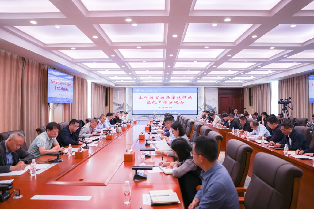 王敦球在聽取匯報后,對各單位、各學(xué)院的整改工作給予了充分肯定。他指出,審核評估整改是全面落實本科教育教學(xué)審核評估工作的重要環(huán)節(jié),是落實評估專家組意見建議、提升學(xué)校人才培養(yǎng)質(zhì)量和辦學(xué)水平的關(guān)鍵環(huán)節(jié)。他強調(diào),一是要在思想上重視,深刻領(lǐng)會審核評估整改工作的重要意義,結(jié)合專家組提出的需要整改的問題和學(xué)校本科教育教學(xué)工作實際,嚴(yán)格對標(biāo)對表,找準(zhǔn)下一步的整改思路、工作重點和突破方向;二是要在行動上擔(dān)當(dāng),有序推進審核評估整改工作的落細(xì)落實,堅持重點整改與全面建設(shè)相結(jié)合、近期整改與長期建設(shè)相結(jié)合、完善規(guī)范與強化特色相結(jié)合的思路,做好評估整改的各項工作;三是要在成果上扎實,協(xié)同保障審核評估整改工作的高質(zhì)高效,要充分調(diào)動人、財、物,切實做好整改過程的統(tǒng)籌協(xié)調(diào)和跟蹤問效,加強督促檢查,對取得的階段性成效和存在的問題要及時梳理、總結(jié),確保穩(wěn)扎穩(wěn)打,突出整改成效。