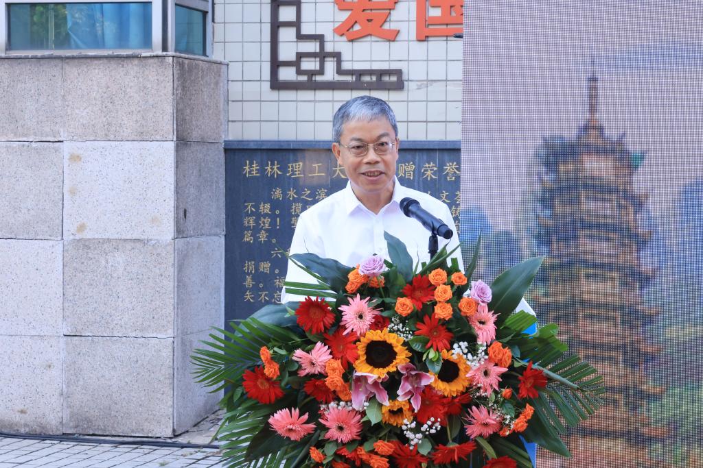 鄧軍代表學(xué)校黨委對(duì)漓江保護(hù)與發(fā)展研究院的揭牌表示熱烈祝賀,向一直以來(lái)關(guān)心和支持學(xué)校建設(shè)發(fā)展的院士、領(lǐng)導(dǎo)、專家表示崇高敬意和衷心感謝。他指出,高站位、高起點(diǎn)成立漓江保護(hù)與發(fā)展研究院,是學(xué)校全面貫徹落實(shí)習(xí)近平總書記關(guān)于科學(xué)保護(hù)漓江重要指示精神和關(guān)于廣西工作論述的重要要求的政治自覺和行動(dòng)自覺;是學(xué)校黨委科學(xué)謀劃、著力推動(dòng)聚焦國(guó)家重大戰(zhàn)略和桂林經(jīng)濟(jì)社會(huì)高質(zhì)量發(fā)展需求,進(jìn)一步提升學(xué)校服務(wù)國(guó)家戰(zhàn)略、地方發(fā)展需求能力的實(shí)際行動(dòng);是學(xué)校貫徹落實(shí)黨的二十大和二十屆三中全會(huì)精神,統(tǒng)籌推進(jìn)教育、科技、人才一體化改革,深化教育綜合改革、科技機(jī)制改革、人才培養(yǎng)模式改革的生動(dòng)實(shí)踐;是推動(dòng)立足新時(shí)代、謀求新發(fā)展、開創(chuàng)新局面,加快高水平理工大學(xué)建設(shè)、推動(dòng)學(xué)校高質(zhì)量發(fā)展的重要舉措。他強(qiáng)調(diào),漓江保護(hù)與發(fā)展研究院要強(qiáng)化漓江保護(hù)和發(fā)展的政治責(zé)任,更好地?fù)?dān)負(fù)起漓江保護(hù)與發(fā)展的時(shí)代使命,深入貫徹落實(shí)習(xí)近平生態(tài)文明思想,圍繞漓江保護(hù)與發(fā)展需求,發(fā)揮學(xué)校多學(xué)科優(yōu)勢(shì),緊扣漓江保護(hù)與發(fā)展重點(diǎn)領(lǐng)域推進(jìn)產(chǎn)教融合、科教融匯,不斷提高科研創(chuàng)新活力、成果轉(zhuǎn)化效率和服務(wù)區(qū)域發(fā)展能力,發(fā)揚(yáng)科學(xué)家精神,以實(shí)際行動(dòng)當(dāng)好保護(hù)桂林山水的“二郎神”,在區(qū)域環(huán)境保護(hù)和綠色、低碳、可持續(xù)發(fā)展上發(fā)揮更大作用。
