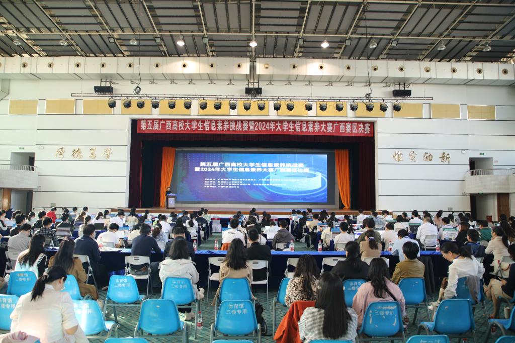 11月9日,第五屆廣西高校大學生信息素養(yǎng)挑戰(zhàn)賽暨2024年大學生信息素養(yǎng)大賽廣西賽區(qū)決賽在我校屏風校區(qū)體育館成功舉辦。本次比賽由大學生信息素養(yǎng)大賽組織委員會主辦,廣西高教學會圖書館專業(yè)委員會、廣西高校圖書情報工作指導(dǎo)委員會和桂林理工大學圖書館承辦。學校黨委常委、副校長羅盛鋒,廣西高教學會圖書館專業(yè)委員會理事長、廣西高校圖書情報工作指導(dǎo)委員會主任委員、廣西大學教授王承就出席開幕式。
