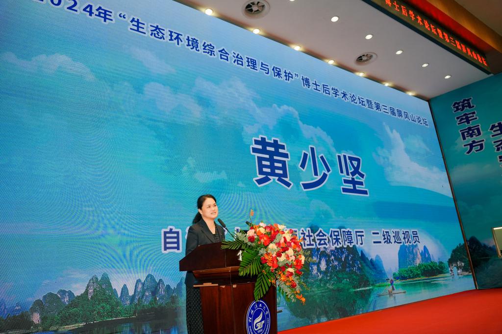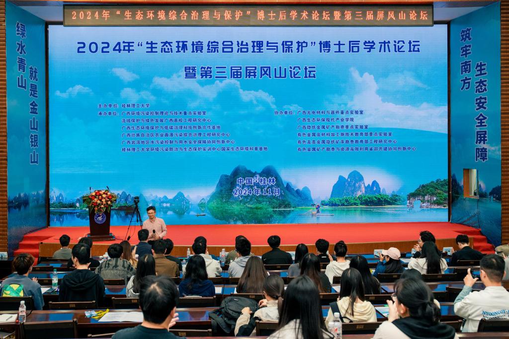 11月8日至11日,2024年“生態(tài)環(huán)境綜合治理與保護(hù)”博士后學(xué)術(shù)論壇暨第三屆屏風(fēng)山論壇在我校屏風(fēng)校區(qū)舉行。學(xué)校黨委副書記、校長王敦球,廣西壯族自治區(qū)人力資源和社會(huì)保障廳二級巡視員黃少堅(jiān),桂林市委常委、常務(wù)副市長蔣春華,中國工程院院士、廣西大學(xué)王雙飛教授出席論壇開幕式并致辭。中國科學(xué)院院士、中國地質(zhì)科學(xué)院巖溶地質(zhì)研究所袁道先研究員,中國工程院院士、中國科學(xué)技術(shù)大學(xué)俞漢青教授,學(xué)校黨委常委、副校長黎貞崇,教工部(人事處、人才辦)、地球科學(xué)學(xué)院、環(huán)境科學(xué)與工程學(xué)院、材料科學(xué)與工程學(xué)院相關(guān)負(fù)責(zé)人參加論壇開幕式。來自全國43家高校、科研院所的500余名領(lǐng)域內(nèi)知名學(xué)者、博士后代表參加會(huì)議。