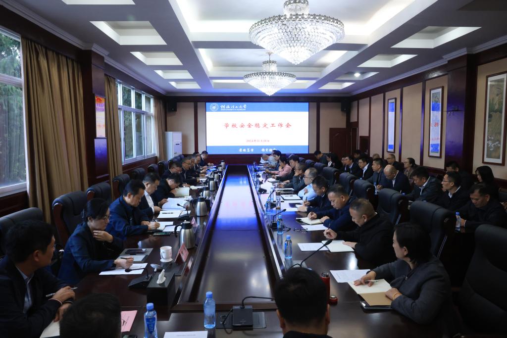 鄧軍就進(jìn)一步做好學(xué)校安全穩(wěn)定工作強(qiáng)調(diào),安全穩(wěn)定是我們做好一切工作的前提和基礎(chǔ),來(lái)不得半點(diǎn)松懈,必須時(shí)刻保持“如履薄冰”的緊迫感和“時(shí)時(shí)放心不下”的責(zé)任感,真正筑牢安全底板、守住安全底線,以高質(zhì)量安全護(hù)航學(xué)校高質(zhì)量發(fā)展。一是要提高政治站位,強(qiáng)化政治擔(dān)當(dāng),深刻認(rèn)識(shí)、準(zhǔn)確把握總體國(guó)家安全觀的豐富內(nèi)涵、核心要義,堅(jiān)持系統(tǒng)觀念、底線思維,堅(jiān)決筑牢校園安全思想防線;二是要聚焦重點(diǎn)領(lǐng)域,緊盯關(guān)鍵環(huán)節(jié),全面深入開展安全隱患排查,統(tǒng)籌兼顧抓好安全教育管理,努力提升多維感知風(fēng)險(xiǎn)預(yù)警,扎實(shí)推進(jìn)應(yīng)急處置能力建設(shè),扎實(shí)推動(dòng)校園安全穩(wěn)定工作走深走實(shí);三是要強(qiáng)化責(zé)任擔(dān)當(dāng),壓緊壓實(shí)責(zé)任,狠抓工作落實(shí),強(qiáng)化信息報(bào)送,嚴(yán)肅追責(zé)問(wèn)責(zé),確保校園安全穩(wěn)定工作取得扎實(shí)成效。他指出,當(dāng)前國(guó)內(nèi)外形勢(shì)復(fù)雜多變,學(xué)校發(fā)展面臨的安全挑戰(zhàn)依然十分嚴(yán)峻,大家要始終把安全工作擺在重中之重的位置,始終把師生生命財(cái)產(chǎn)安全放在第一位,進(jìn)一步增強(qiáng)責(zé)任感和使命感,以更加飽滿的精神狀態(tài)、更加強(qiáng)烈的擔(dān)當(dāng)意識(shí)投入學(xué)校安全穩(wěn)定工作中,為學(xué)校的安全穩(wěn)定發(fā)展貢獻(xiàn)更大力量。
