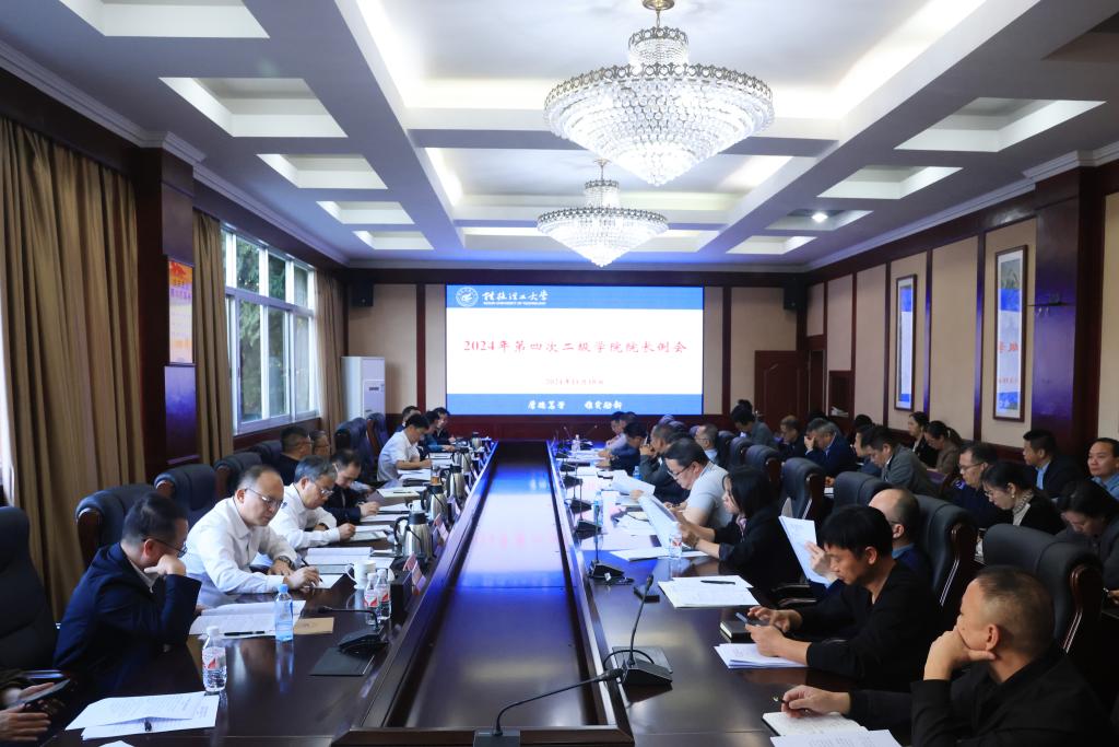 為推進學(xué)?!皬娫号d?!毙袆尤〉脤嵭?,促進學(xué)校各項事業(yè)高質(zhì)量發(fā)展,11月18日下午,學(xué)校在屏風(fēng)校區(qū)教八樓三樓會議室召開2024年第四次二級學(xué)院院長例會。校領(lǐng)導(dǎo)鄧軍、王敦球、周國清、王磊、黎貞崇、羅盛鋒、唐壯東、曾繁榮出席會議,黨辦校辦法務(wù)辦、組織部、人事處、學(xué)工部、研工部、發(fā)規(guī)處、本科生院、研究生院、科研院、財務(wù)處、資產(chǎn)處、校團委、國交處主要負責(zé)人及各二級學(xué)院黨委書記、院長參加會議。會議由學(xué)校黨委常委、副校長羅盛鋒主持。