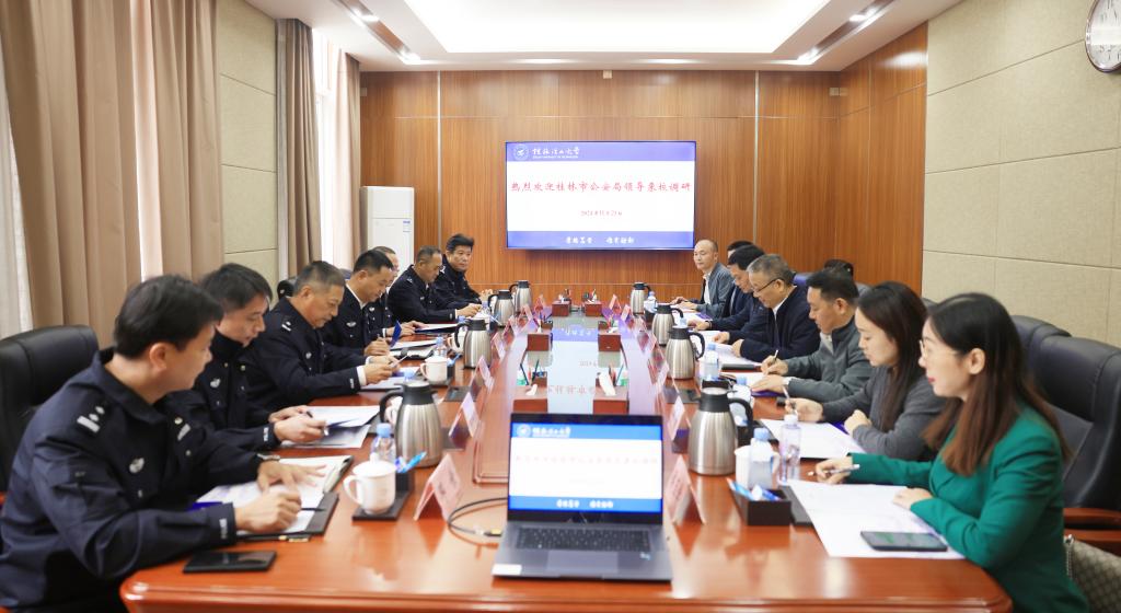 王敦球對莫一格一行的到來表示熱烈歡迎,對桂林市委、市政府、公安機關長期以來對學校事業(yè)發(fā)展的關心支持表示衷心感謝。他簡要介紹了我校歷史沿革、辦學規(guī)模、人才培養(yǎng)、學科建設、科技創(chuàng)新等基本情況,并就進一步完善警校聯(lián)動機制、校園及周邊綜合治理等方面進行深入交流。