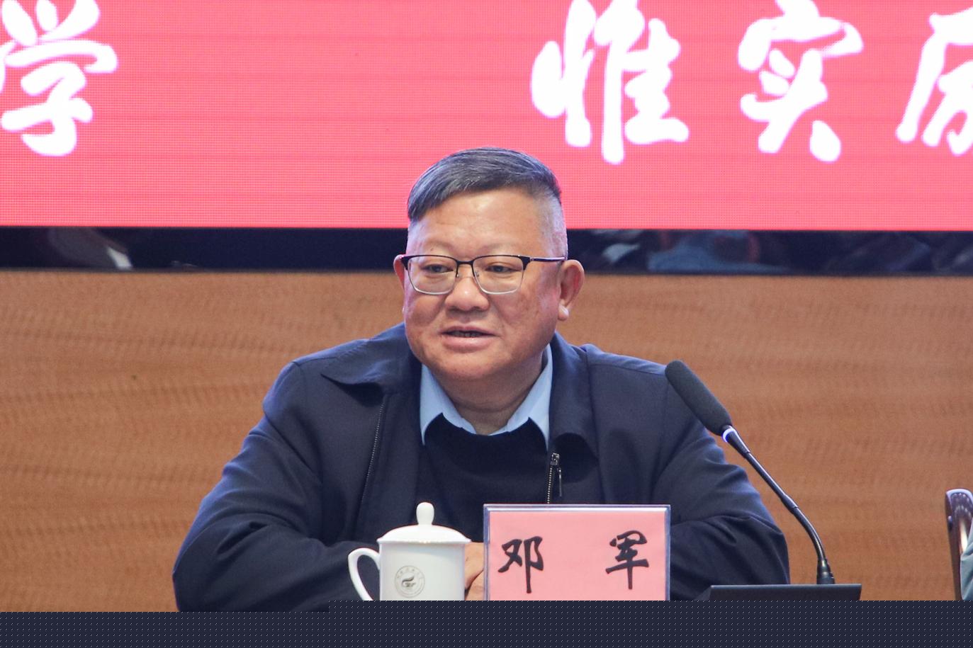 鄧軍表示,2024年,學(xué)?;鶎狱h建工作全面進步,黨組織政治功能、組織功能有效發(fā)揮,高質(zhì)量黨建對事業(yè)高質(zhì)量發(fā)展的引領(lǐng)推動保障更加有力。一年來,在學(xué)校黨委領(lǐng)導(dǎo)下,學(xué)校各級黨組織和廣大黨員干部堅持以習(xí)近平新時代中國特色社會主義思想為指導(dǎo),全面貫徹落實黨的二十大和二十屆二中、三中全會精神,認(rèn)真貫徹落實新時代黨的建設(shè)總要求和新時代黨的組織路線,深入開展黨紀(jì)學(xué)習(xí)教育,扎實推進“五基三化”深化年行動和黨建“雙創(chuàng)”工作,持續(xù)推進“三全育人”綜合改革,不斷構(gòu)建“大黨建”“大思政”工作格局,黨對學(xué)校工作的全面領(lǐng)導(dǎo)堅強有力,學(xué)校政治鑄魂基礎(chǔ)更加厚實、意識形態(tài)陣地更加鞏固、思政引領(lǐng)力更加強大、基層戰(zhàn)斗堡壘更加堅固、隊伍建設(shè)活力更加強勁、體系保障機制更加完善、深化改革走深走實、內(nèi)涵建設(shè)扎實推進、人才培養(yǎng)質(zhì)量不斷提高、高質(zhì)量發(fā)展成果更加豐碩。
