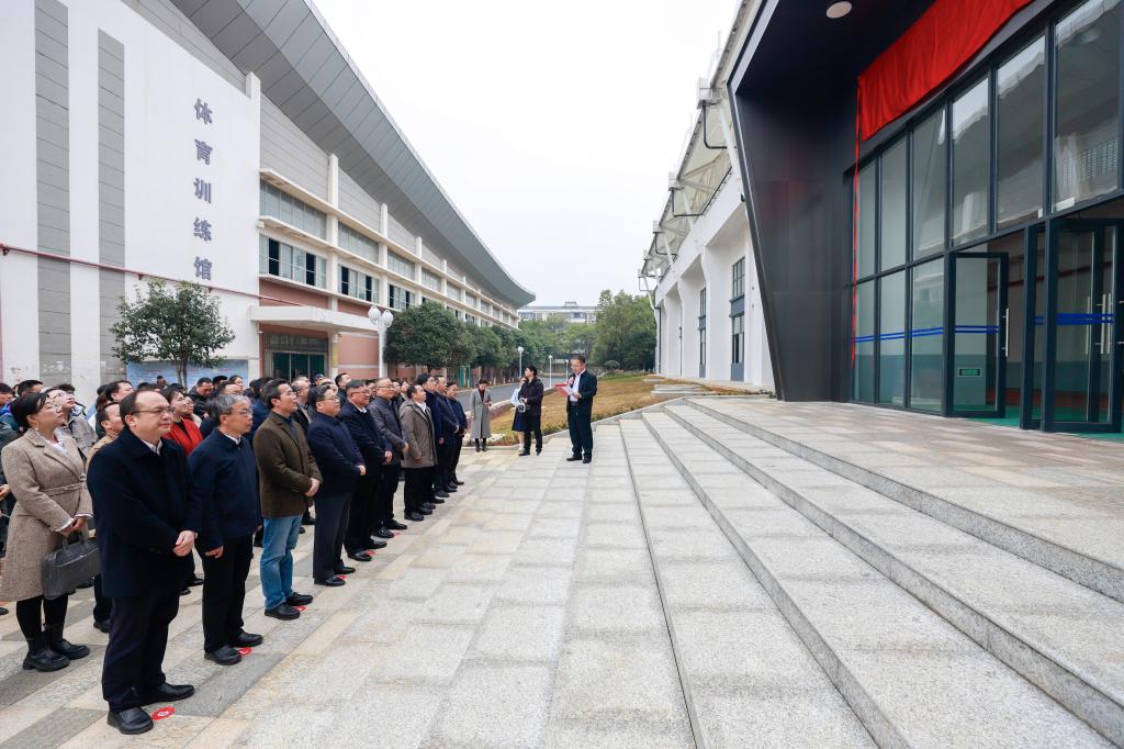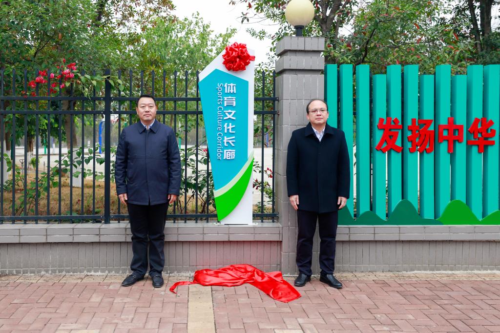 學(xué)校黨委常委、副校長羅盛鋒,黨委常委、副校長、組織部部長唐壯東為體育文化長廊揭牌