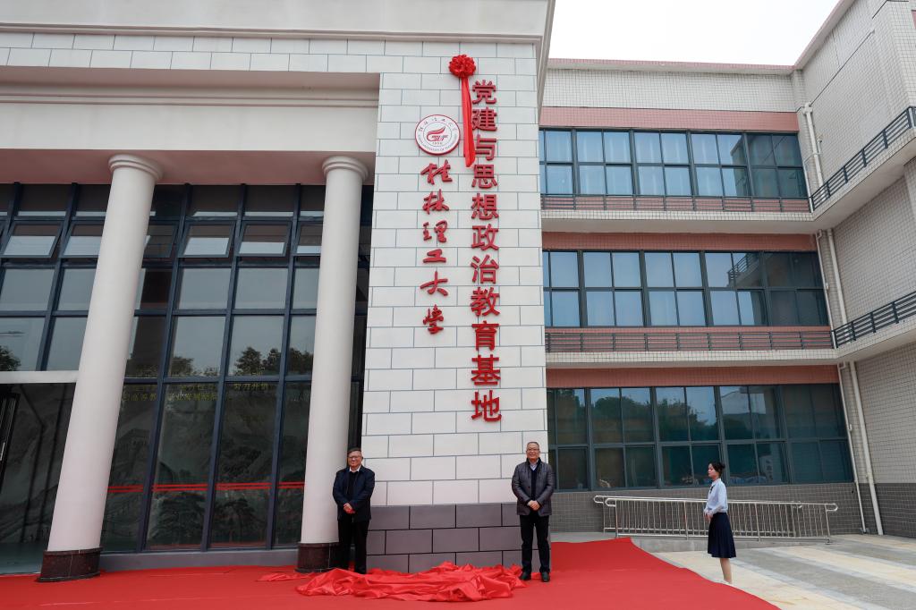 學(xué)校黨委書記鄧軍、校長王敦球?yàn)辄h建與思想政治教育基地揭牌