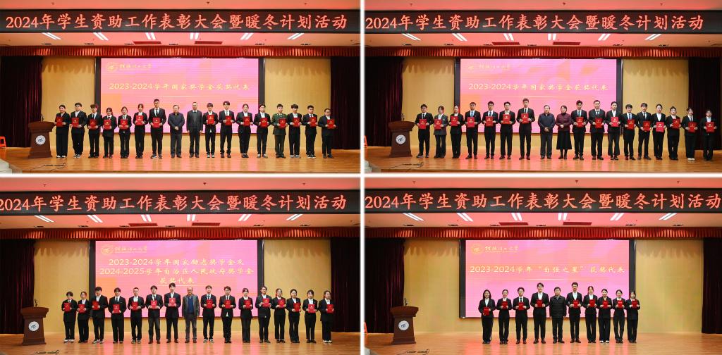 會議聽取了學(xué)校2024年度學(xué)生資助情況匯報,表彰了2023-2024學(xué)年桂林理工大學(xué)“自強之星”代表、2023-2024學(xué)年國家勵志獎學(xué)金及2024-2025學(xué)年自治區(qū)人民政府獎學(xué)金獲獎代表、2023-2024學(xué)年研究生國家獎學(xué)金獲獎代表和2023-2024學(xué)年本專科生國家獎學(xué)金獲獎代表。吳志強代表學(xué)校為受助學(xué)生代表發(fā)放了暖冬大禮包。