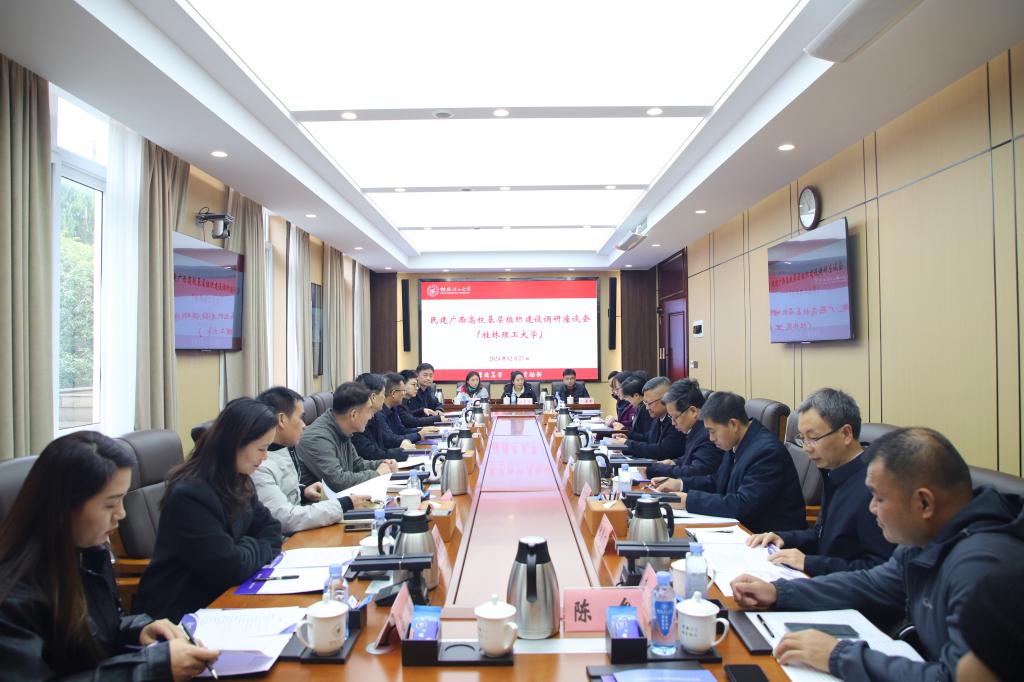 12月27日上午,全國政協(xié)常委、自治區(qū)政協(xié)副主席、民建廣西區(qū)委主委錢學(xué)明到校調(diào)研民主黨派基層黨組織建設(shè)情況,民建廣西區(qū)委專職副主委沈小松、秘書長陳競宇,桂林市政協(xié)副主席、民建桂林市委主委鄭毅等陪同調(diào)研。學(xué)校黨委書記鄧軍,黨委副書記吳志強(qiáng)在屏風(fēng)校區(qū)辦公樓第一會議室熱情接待了調(diào)研組。學(xué)校黨委組織部、黨委統(tǒng)戰(zhàn)部有關(guān)負(fù)責(zé)人,各民主黨派主委及黨外人士代表參加會議。