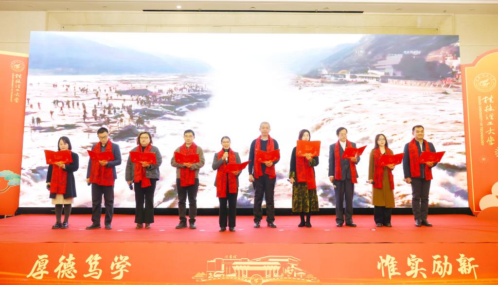 學(xué)校黨委書記鄧軍在座談會上講話。他指出,2024年,在習(xí)近平新時代中國特色社會主義思想指引下,全體桂工人在新征程上留下了堅(jiān)實(shí)足跡,在趕考中書寫了美麗答卷,在攻堅(jiān)克難中收獲喜悅,在團(tuán)結(jié)奮斗中感受幸福。他深情回顧了過去一年學(xué)校高質(zhì)量發(fā)展取得的新突破和新成效,對學(xué)校統(tǒng)一戰(zhàn)線工作一年來取得的成績給予了高度評價(jià)和肯定,并代表學(xué)校黨委向?yàn)榉?wù)廣西發(fā)展、助力學(xué)校全面圖強(qiáng)作出積極貢獻(xiàn)的統(tǒng)一戰(zhàn)線各界人士表示衷心的感謝和崇高的敬意。