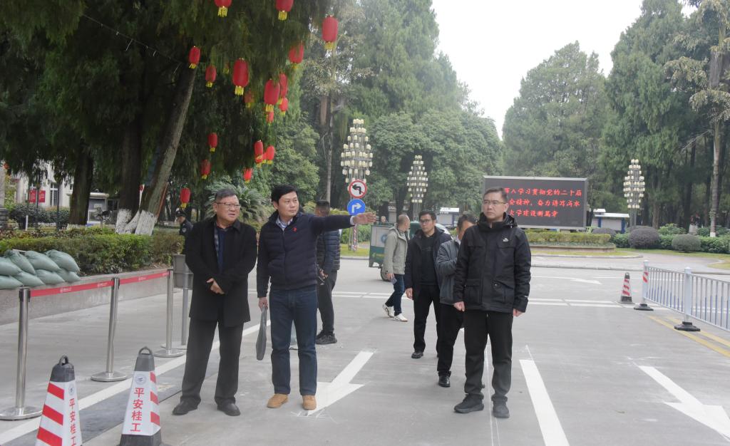 在新學(xué)期即將啟幕之際,2月24日上午,學(xué)校黨委書記鄧軍帶隊(duì)在屏風(fēng)校區(qū)就校園環(huán)境建設(shè)和開學(xué)準(zhǔn)備情況進(jìn)行實(shí)地調(diào)研檢查。校長助理、組織部部長、黨辦校辦法務(wù)辦主任張成龍,以及基建處、保衛(wèi)處、后勤服務(wù)中心等相關(guān)部門負(fù)責(zé)人參加調(diào)研。
