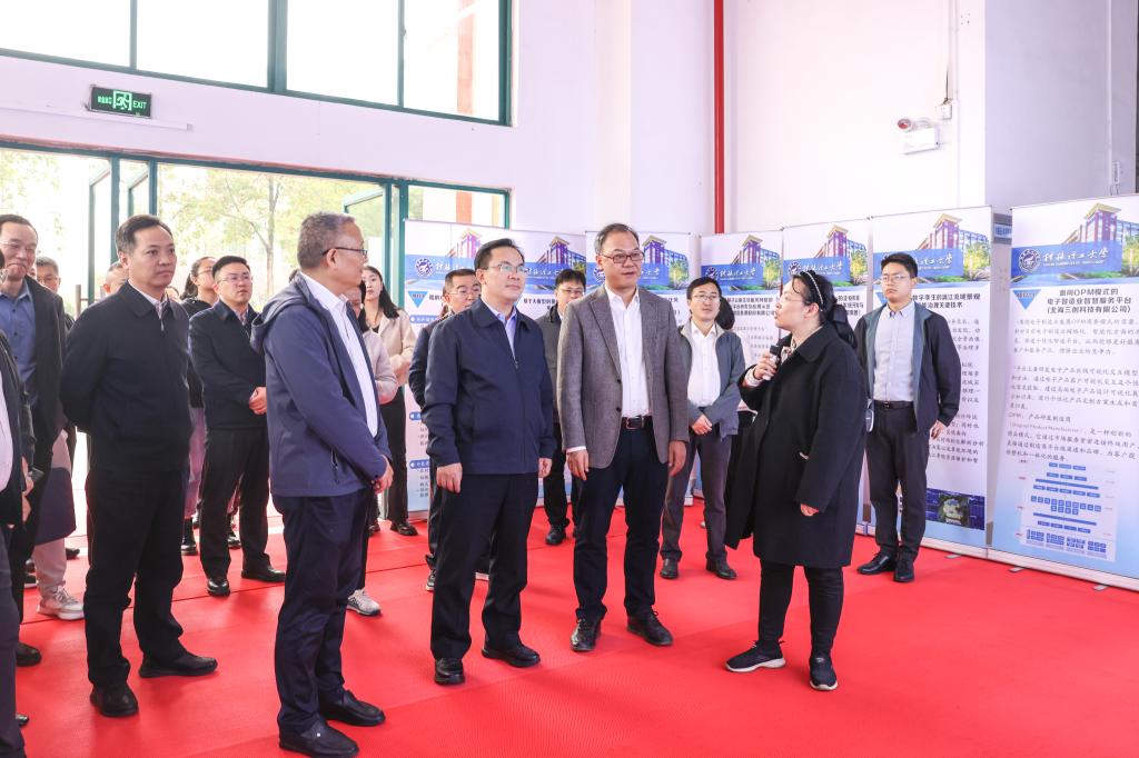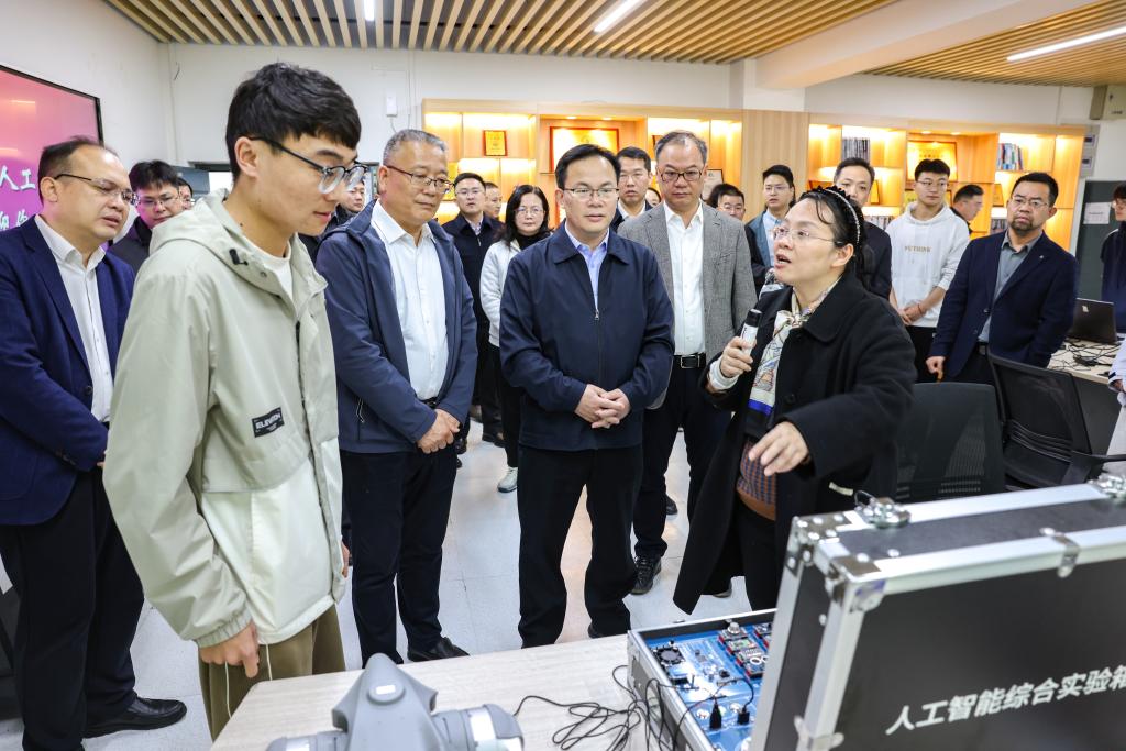盧新華一行聽取了我校人工智能學(xué)院建設(shè)情況及“人工智能+”系列項(xiàng)目匯報(bào),實(shí)地參觀人工智能研究院、人工智能及機(jī)器人實(shí)驗(yàn)中心,對(duì)學(xué)校取得的科技成果表示高度贊賞。他強(qiáng)調(diào),要持續(xù)深化校地合作,聚焦人工智能領(lǐng)域搶占先機(jī),以數(shù)智化助力桂林世界級(jí)旅游城市建設(shè)奮進(jìn)突破,加速智能化成果融入千行百業(yè)。