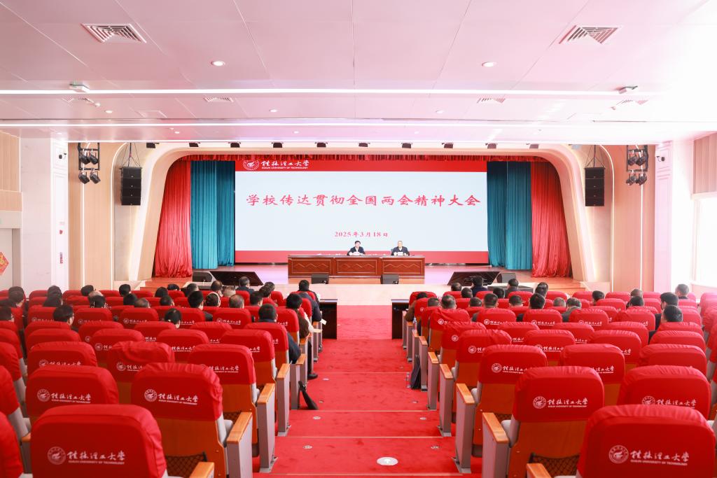 王敦球在主持會議時強調(diào),學習貫徹好習近平總書記重要講話和全國兩會精神是當前一項重大政治任務,學校各單位各部門要迅速組織傳達學習本次會議精神,把學習貫徹習近平總書記在全國兩會期間的重要講話和全國兩會精神與推進學校事業(yè)高質(zhì)量發(fā)展緊密結(jié)合起來,扎實組織開展深入貫徹中央八項規(guī)定精神學習教育,切實把學習成果轉(zhuǎn)化為推動學校事業(yè)發(fā)展的方法舉措,搶抓高等教育綜合改革重大機遇,始終以服務國家重大戰(zhàn)略需求、推動區(qū)域經(jīng)濟社會高質(zhì)量發(fā)展為己任,全力以赴完成好2025年學校各項工作目標任務,奮力在新時代高水平理工大學建設新征程上展現(xiàn)更大作為,為譜寫中國式現(xiàn)代化廣西篇章貢獻更大力量!