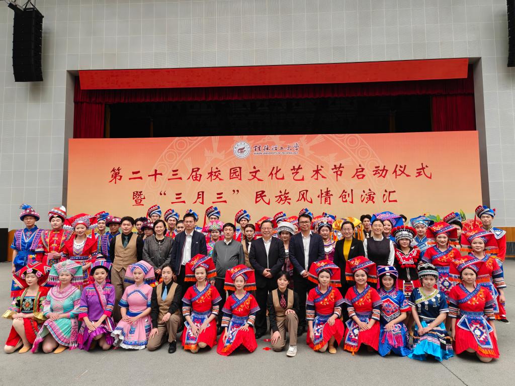 為深入貫徹落實(shí)黨的二十大精神和全國兩會精神,深化鑄牢中華民族共同體意識教育,營造健康向上的校園文化氛圍,3月21日下午,學(xué)校在雁山校區(qū)新體育館舉辦第二十三屆校園文化藝術(shù)節(jié)啟動儀式暨“三月三”民族風(fēng)情創(chuàng)演匯活動。學(xué)校黨委副書記吳志強(qiáng),共青團(tuán)廣西區(qū)委學(xué)校部副部長林正柏,校黨委常委葉昊、邱杰出席活動。學(xué)工部、研工部、校團(tuán)委相關(guān)負(fù)責(zé)人,各學(xué)院師生代表1000余人參加活動。
