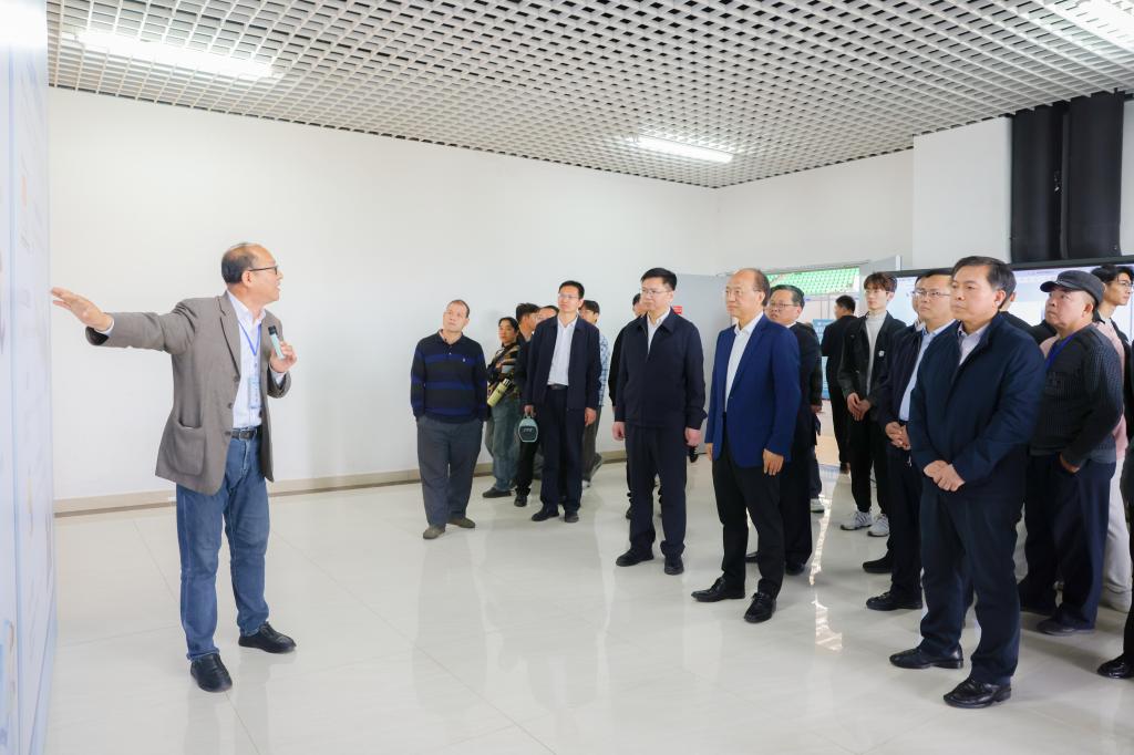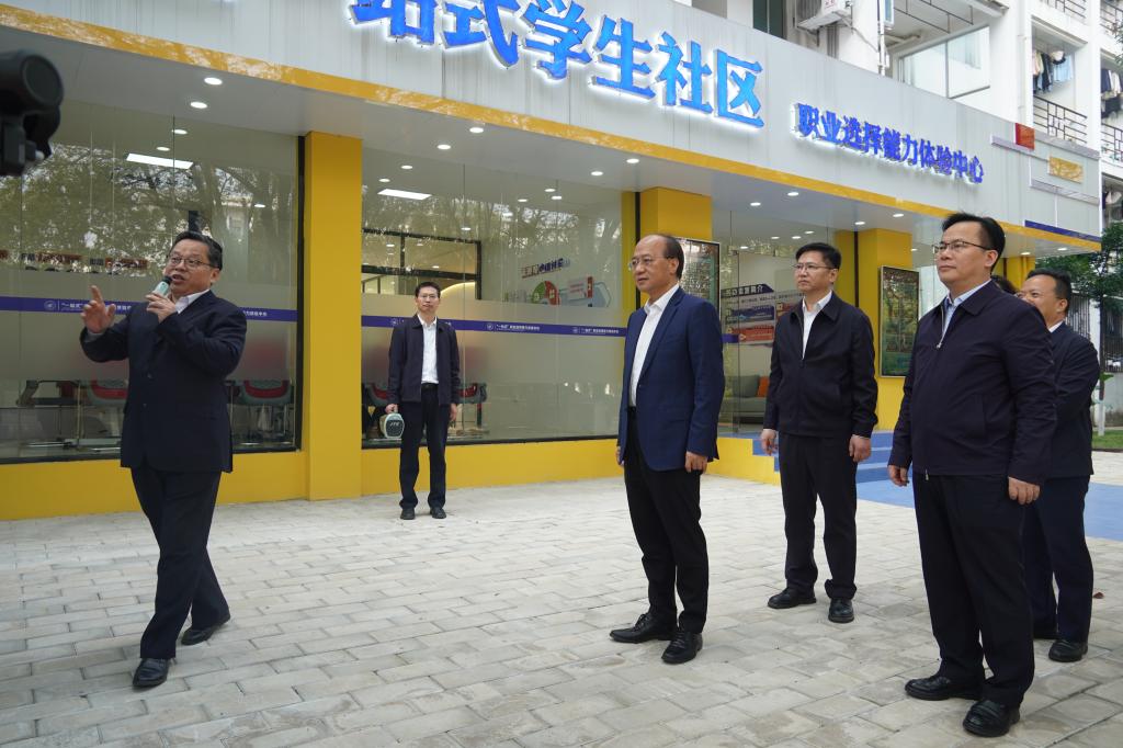 自治區(qū)人民政府副主席廖品琥(中)在學(xué)校全國(guó)高校示范“一站式”學(xué)生社區(qū)職業(yè)選擇能力體驗(yàn)中心實(shí)地考察