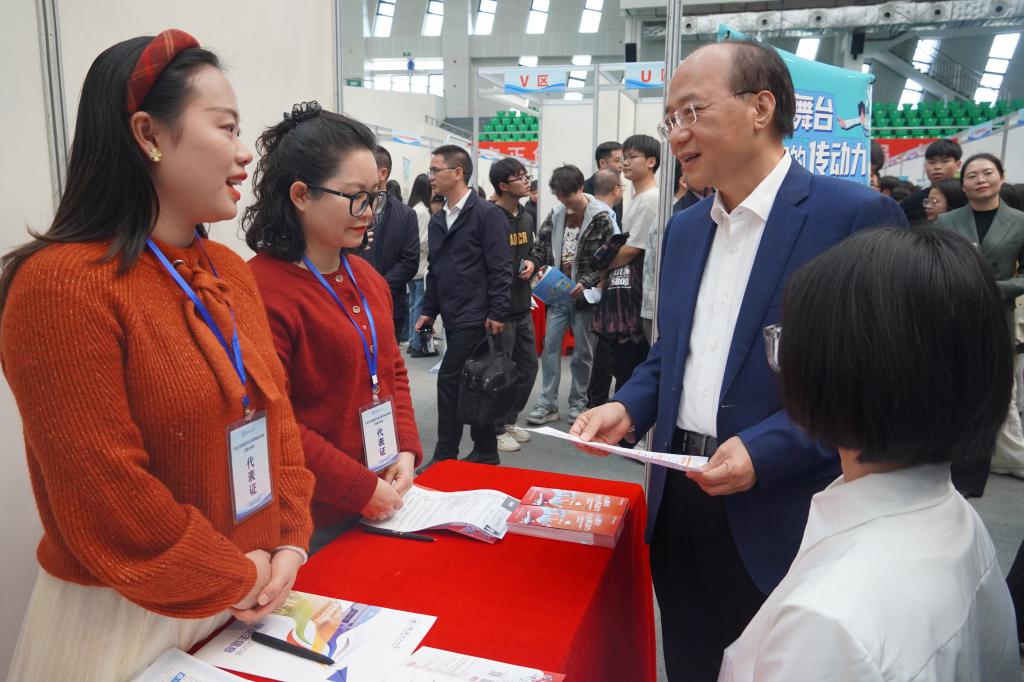 調(diào)研期間,廖品琥實(shí)地考察了學(xué)校全國(guó)高校示范“一站式”學(xué)生社區(qū)職業(yè)選擇能力體驗(yàn)中心,聽取了我校關(guān)于2025屆畢業(yè)生就業(yè)工作情況的匯報(bào),詳細(xì)了解學(xué)校人工智能賦能畢業(yè)生求職就業(yè)情況和“一對(duì)一”職業(yè)生涯咨詢、就業(yè)政策解讀、AI人崗匹配等活動(dòng)開展情況,并在雙選會(huì)現(xiàn)場(chǎng)與企業(yè)代表、畢業(yè)生代表深入交流,詳細(xì)了解企業(yè)用工需求、崗位職責(zé)、薪資待遇和畢業(yè)生簡(jiǎn)歷投遞情況,聽取企業(yè)代表對(duì)學(xué)校人才培養(yǎng)、就業(yè)服務(wù)等方面的意見建議,向現(xiàn)場(chǎng)求職學(xué)生了解就業(yè)意向和求職評(píng)價(jià)。他對(duì)學(xué)校黨委高度重視就業(yè)工作取得的成效給予充分肯定,指出要持續(xù)發(fā)揮示范引領(lǐng)作用。