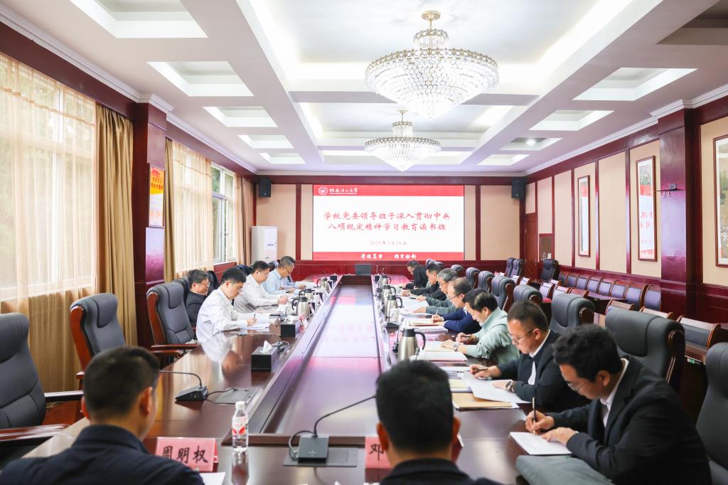 3月28日,學(xué)校黨委領(lǐng)導(dǎo)班子深入貫徹中央八項(xiàng)規(guī)定精神學(xué)習(xí)教育讀書(shū)班正式開(kāi)班。校黨委書(shū)記農(nóng)毅主持并講話。學(xué)校黨委領(lǐng)導(dǎo)班子全體成員參加讀書(shū)班。黨辦、組織部、校紀(jì)委相關(guān)負(fù)責(zé)人列席。