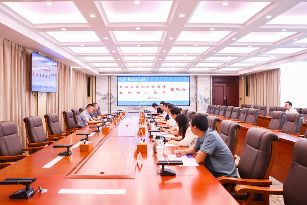韓流對我校近年來在學科建設(shè)、人才培養(yǎng)、服務(wù)國家戰(zhàn)略和廣西經(jīng)濟社會發(fā)展方面取得的成績予以肯定。他指出,桂林理工大學依托獨特的區(qū)位優(yōu)勢和學科特色,在服務(wù)廣西文旅產(chǎn)業(yè)發(fā)展方面做出了積極貢獻。他強調(diào),要進一步深化產(chǎn)學研融合,充分發(fā)揮學校優(yōu)勢,加速成果轉(zhuǎn)化,賦能文旅產(chǎn)業(yè)升級;聚焦文旅發(fā)展痛點,提供特色化、差異化的高水平智力支持;加強協(xié)同聯(lián)動,建立健全常態(tài)化溝通合作機制,促進學術(shù)研究與產(chǎn)業(yè)需求的深度融合,推動更多創(chuàng)新想法和研究成果在服務(wù)地方文旅發(fā)展中落地生根、開花結(jié)果。