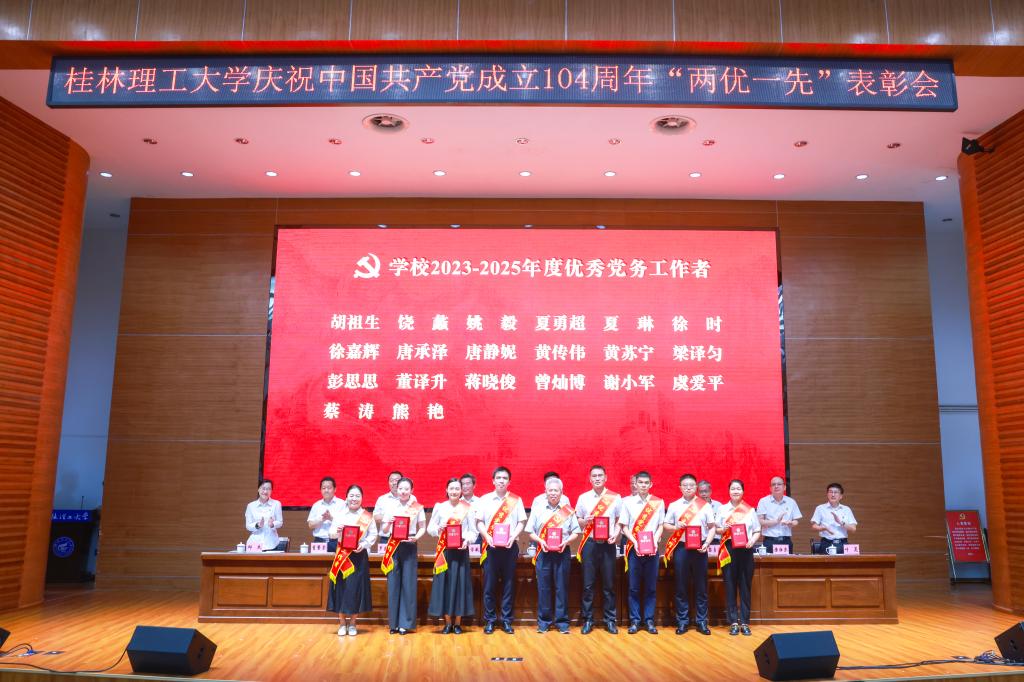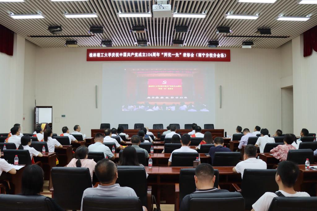 7月1日,學(xué)校在屏風(fēng)校區(qū)圖書(shū)館報(bào)告廳召開(kāi)慶祝中國(guó)共產(chǎn)黨成立104周年“兩優(yōu)一先”表彰會(huì)。學(xué)校黨委書(shū)記農(nóng)毅在會(huì)上講話。校黨委副書(shū)記、校長(zhǎng)王敦球主持大會(huì)。在家校領(lǐng)導(dǎo)韋學(xué)敏、黎貞崇、羅盛鋒、唐壯東、曾繁榮,黨委常委葉昊、邱杰出席會(huì)議。各職能部門(mén)主要負(fù)責(zé)人,各二級(jí)黨委書(shū)記、專(zhuān)職組織員,全體受表彰黨員和基層黨組織負(fù)責(zé)人,黨支部書(shū)記、新黨員、離退休老黨員代表以及民主黨派代表參加會(huì)議。南寧分校設(shè)分會(huì)場(chǎng)。