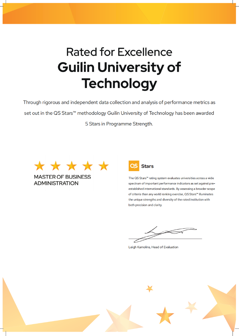 近日,我校MBA項(xiàng)目在全球權(quán)威高等教育評(píng)估體系QS Stars中獲評(píng)最高級(jí)別的五星認(rèn)證,是桂北地區(qū)首個(gè)獲五星認(rèn)證的項(xiàng)目,標(biāo)志著學(xué)校在商科教育領(lǐng)域的綜合實(shí)力和國際影響力得到高度認(rèn)可,展現(xiàn)了我校工商管理學(xué)科和MBA教育在人才培養(yǎng)、學(xué)術(shù)研究、國際化合作等方面取得的成就,為MBA項(xiàng)目的發(fā)展奠定了更堅(jiān)實(shí)的基礎(chǔ)。