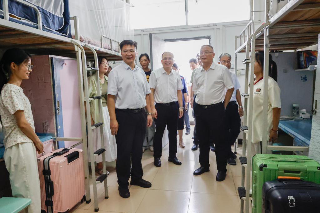 9月7日,學校黨委書記農(nóng)毅,黨委副書記、校長王敦球,黨委副書記黎貞崇,黨委常委、副校長王磊,黨委常委、副校長唐壯東,黨委常委、總會計師曾繁榮等赴雁山校區(qū),深入迎新一線檢查指導工作,親切看望新生,并慰問辛勤服務的工作人員。校長助理張成龍及相關(guān)職能部門負責人陪同檢查。